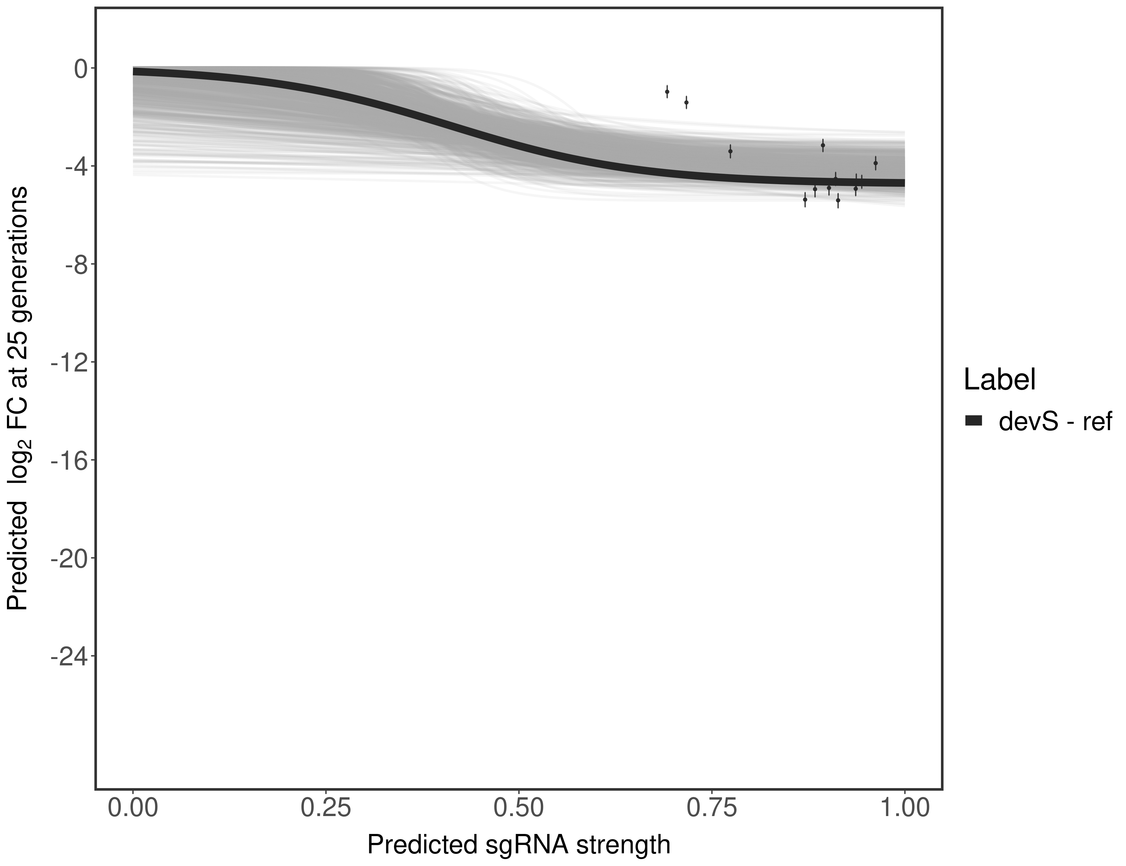In order to quantify gene vulnerability, data were subsequently analyzed with a hierarchical model at the sgRNA level (two-line model) and gene level (Hill curve). The vulnerability quantification is shown below. [More information]