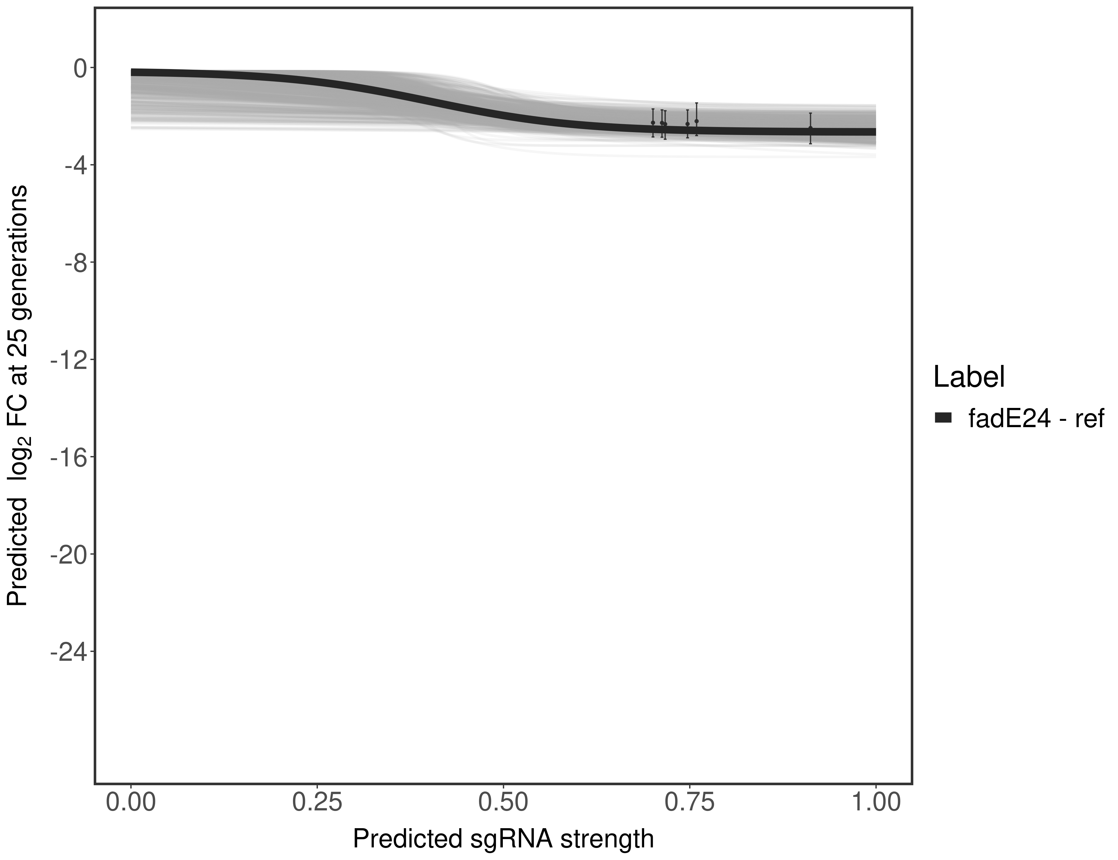 Here, we show sgRNA log2 fold-change values (L2FC) (plus versus minus ATc) over consecutive generations for sgRNAs targeting the gene you selected.