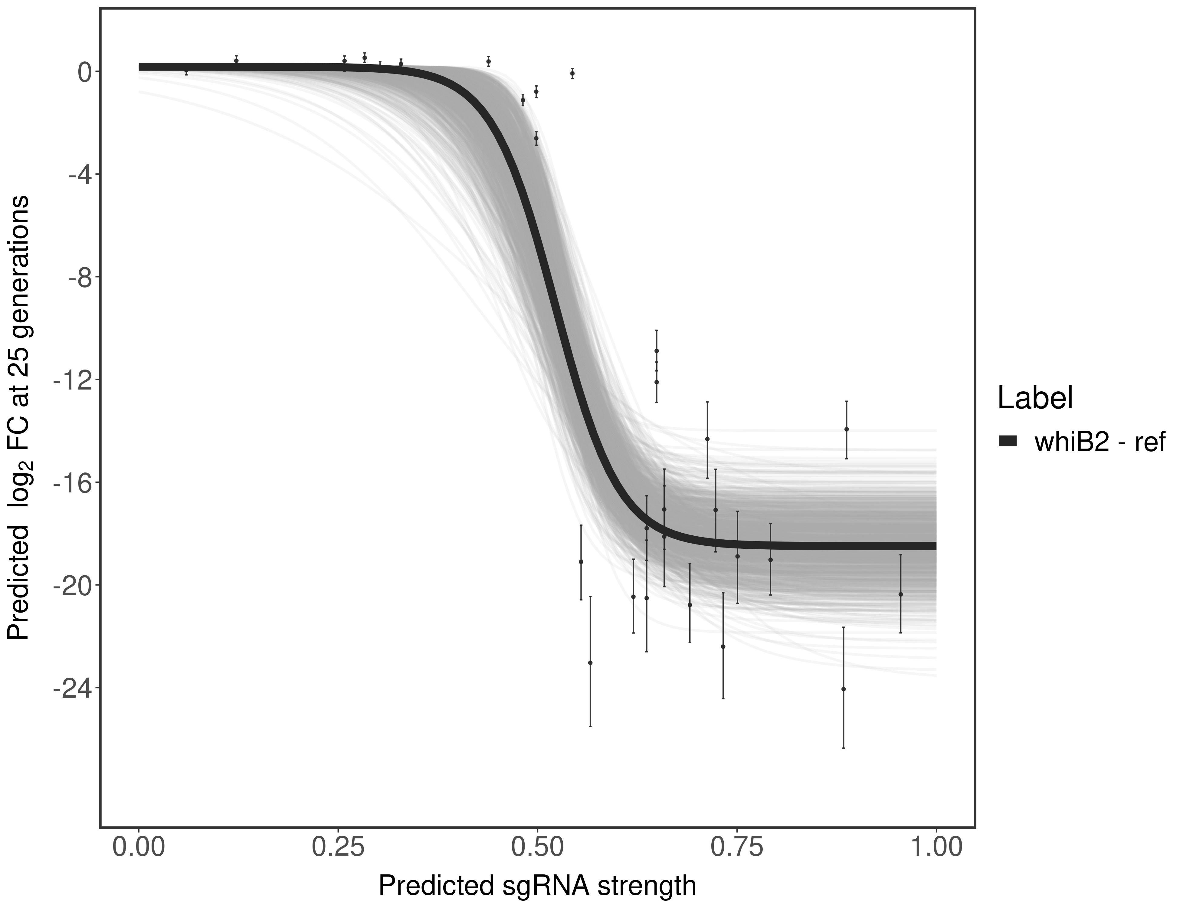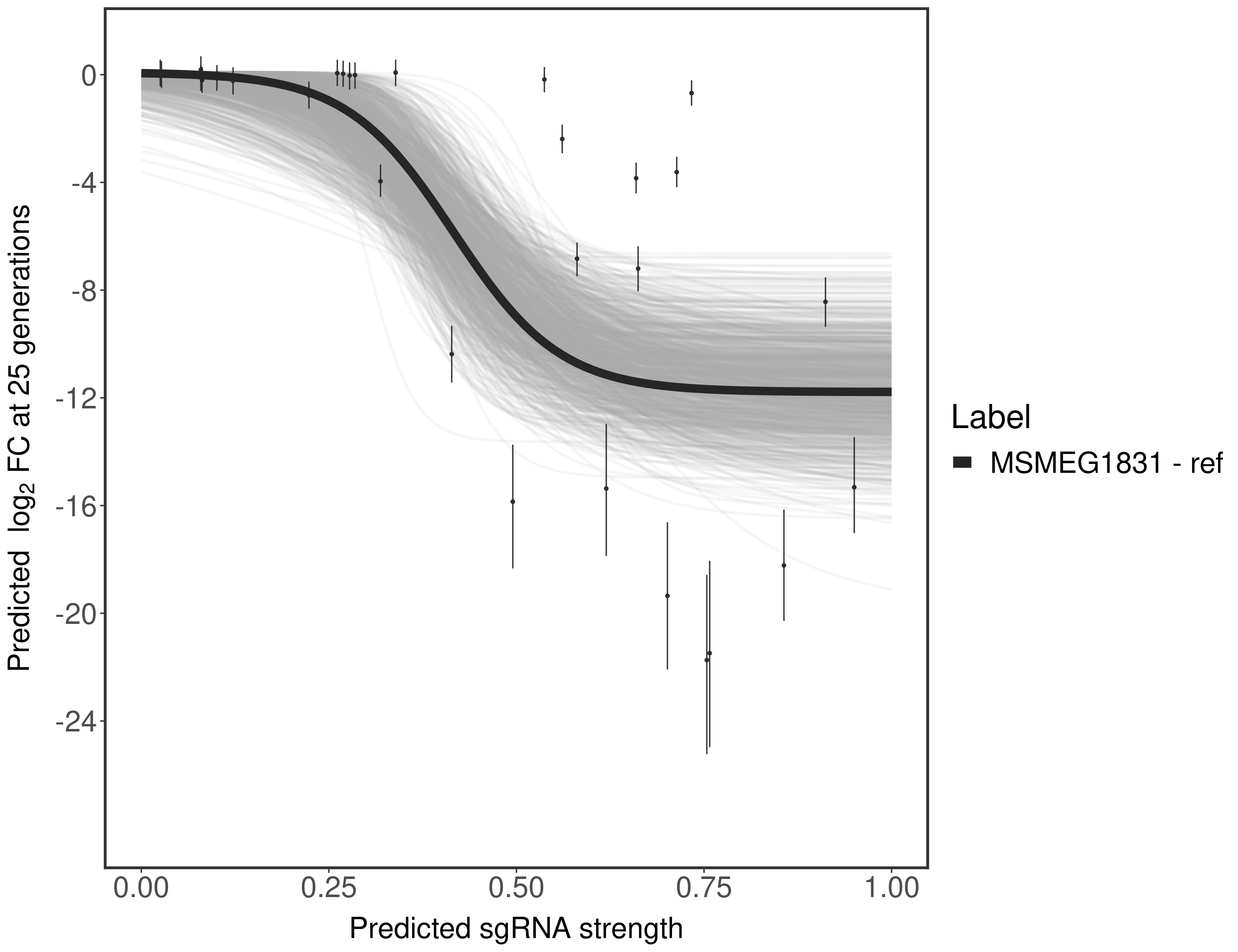 Experiment: We designed an M. tuberculosis CRISPRi library (RLC12) to target all annotated Mtb genes with single guide RNAs (sgRNAs) of varying predicted knockdown efficiencies.