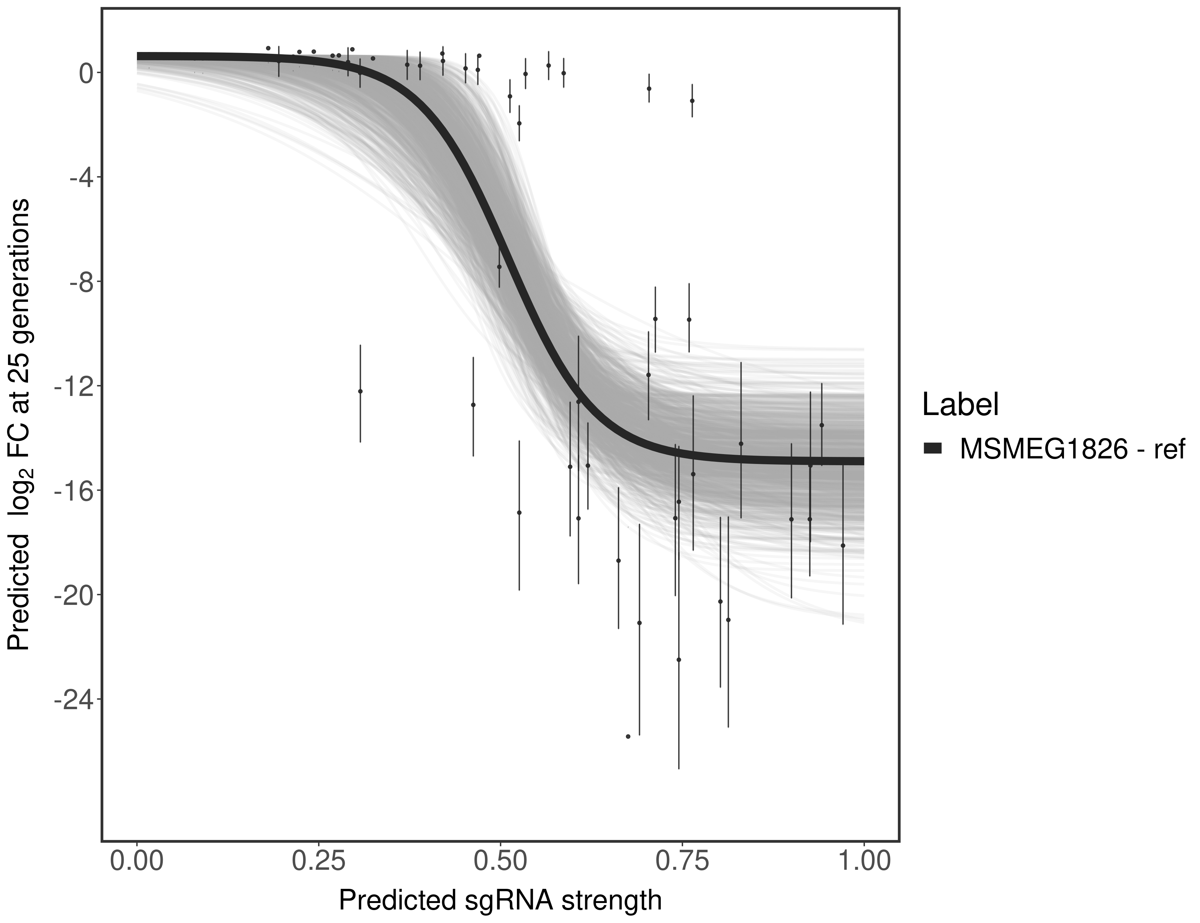Experiment: We designed an M. tuberculosis CRISPRi library (RLC12) to target all annotated Mtb genes with single guide RNAs (sgRNAs) of varying predicted knockdown efficiencies.