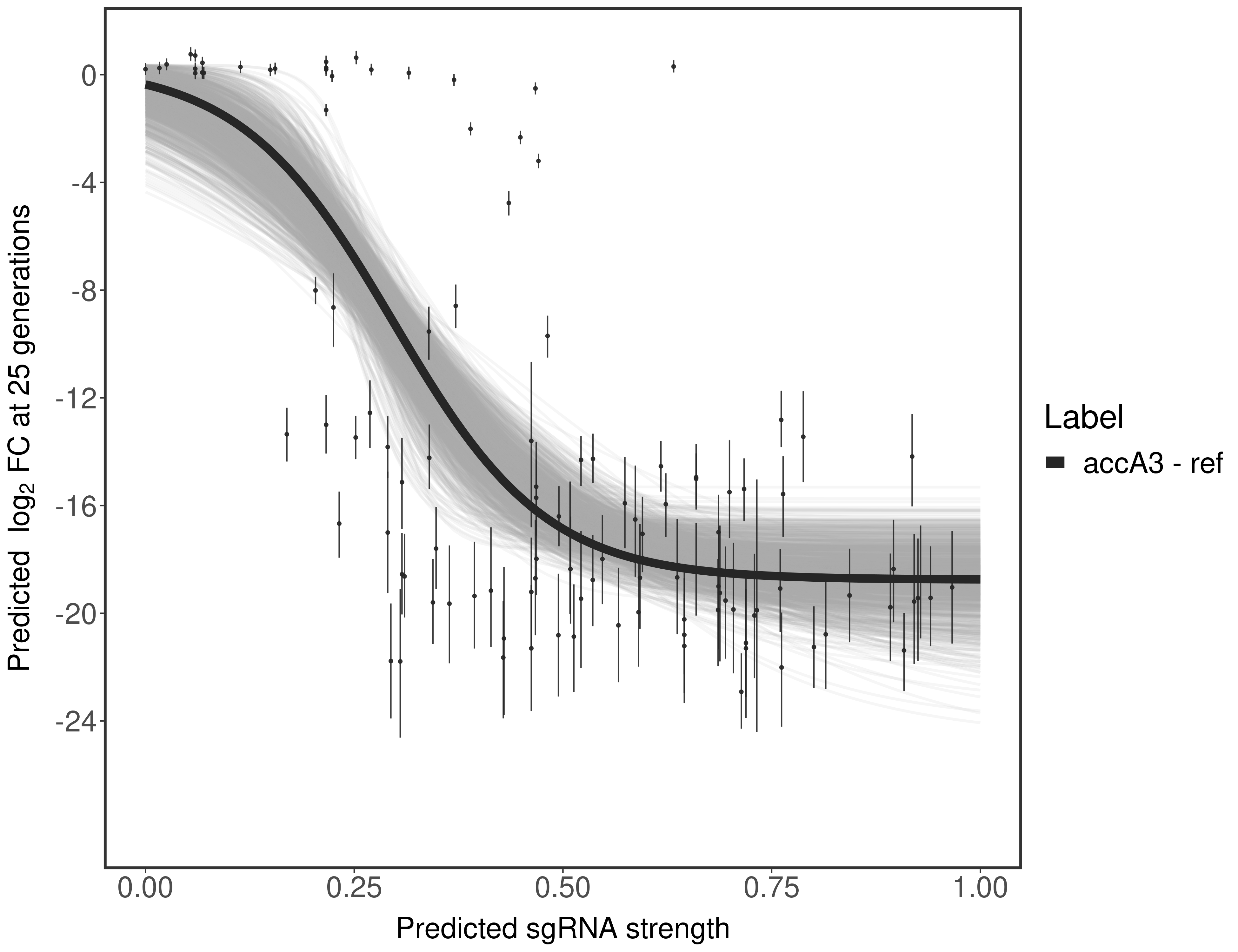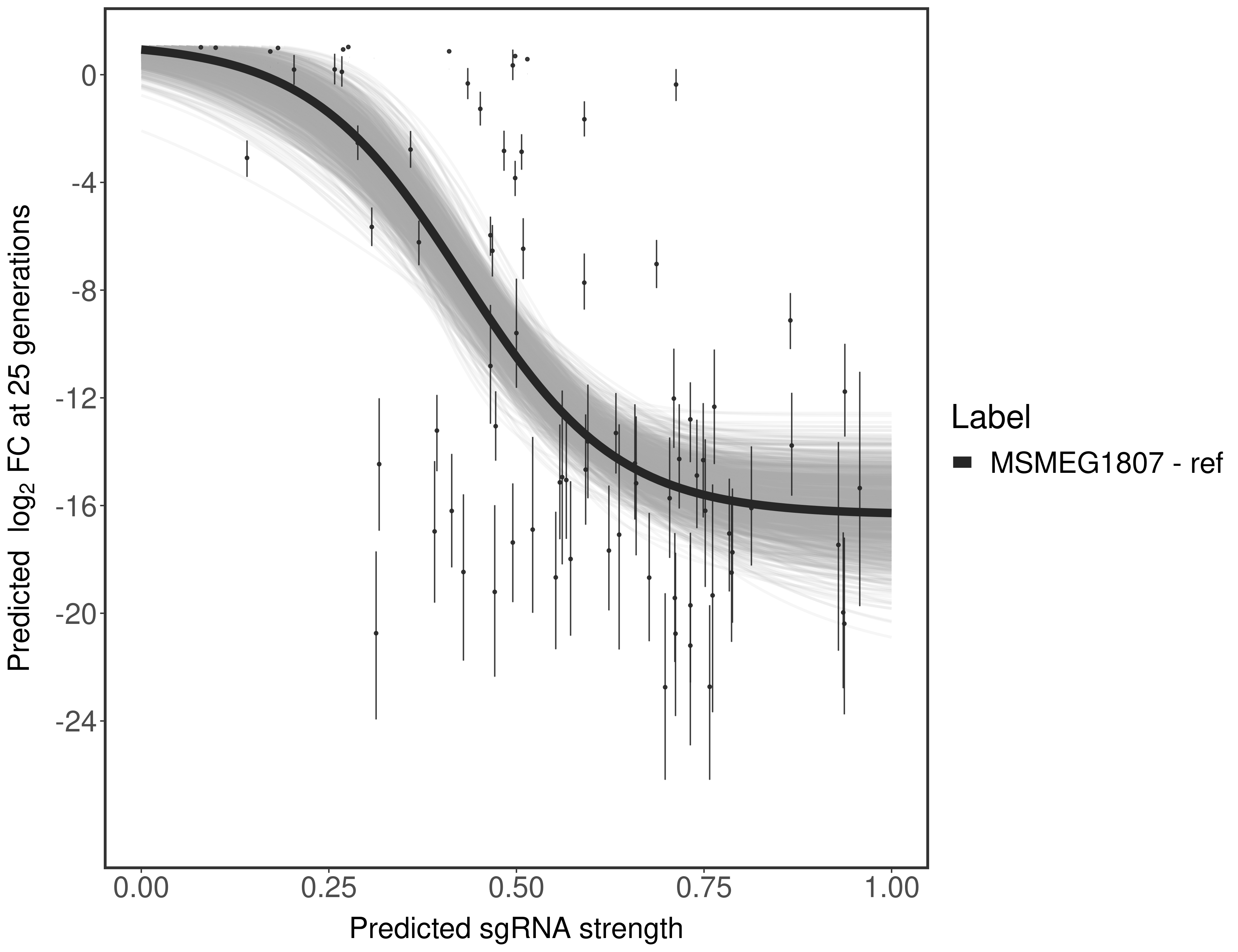 Experiment: We designed an M. tuberculosis CRISPRi library (RLC12) to target all annotated Mtb genes with single guide RNAs (sgRNAs) of varying predicted knockdown efficiencies.