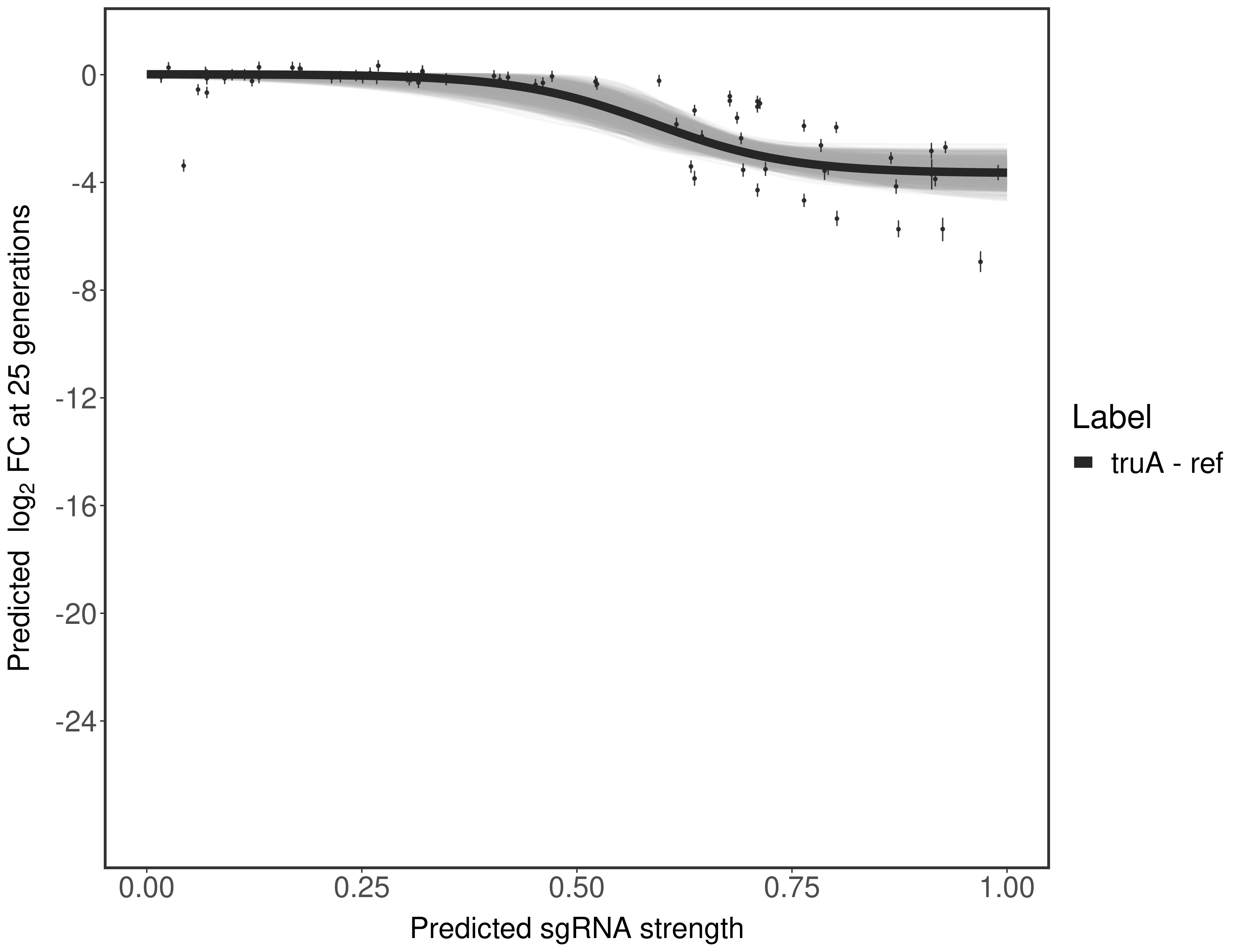 In order to quantify gene vulnerability, data were subsequently analyzed with a hierarchical model at the sgRNA level (two-line model) and gene level (Hill curve). The vulnerability quantification is shown below. [More information]