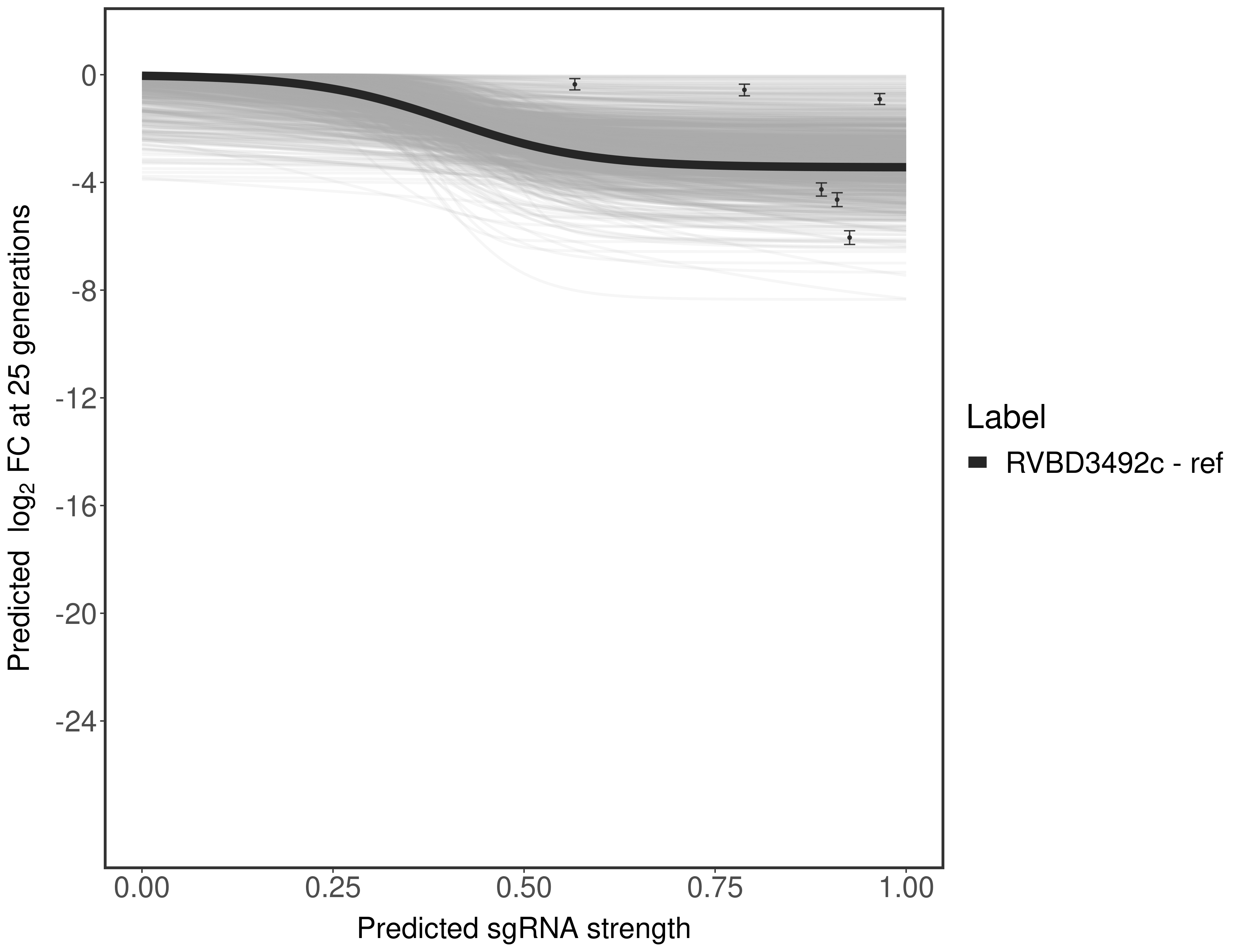 In order to quantify gene vulnerability, data were subsequently analyzed with a hierarchical model at the sgRNA level (two-line model) and gene level (Hill curve). The vulnerability quantification is shown below. [More information]
