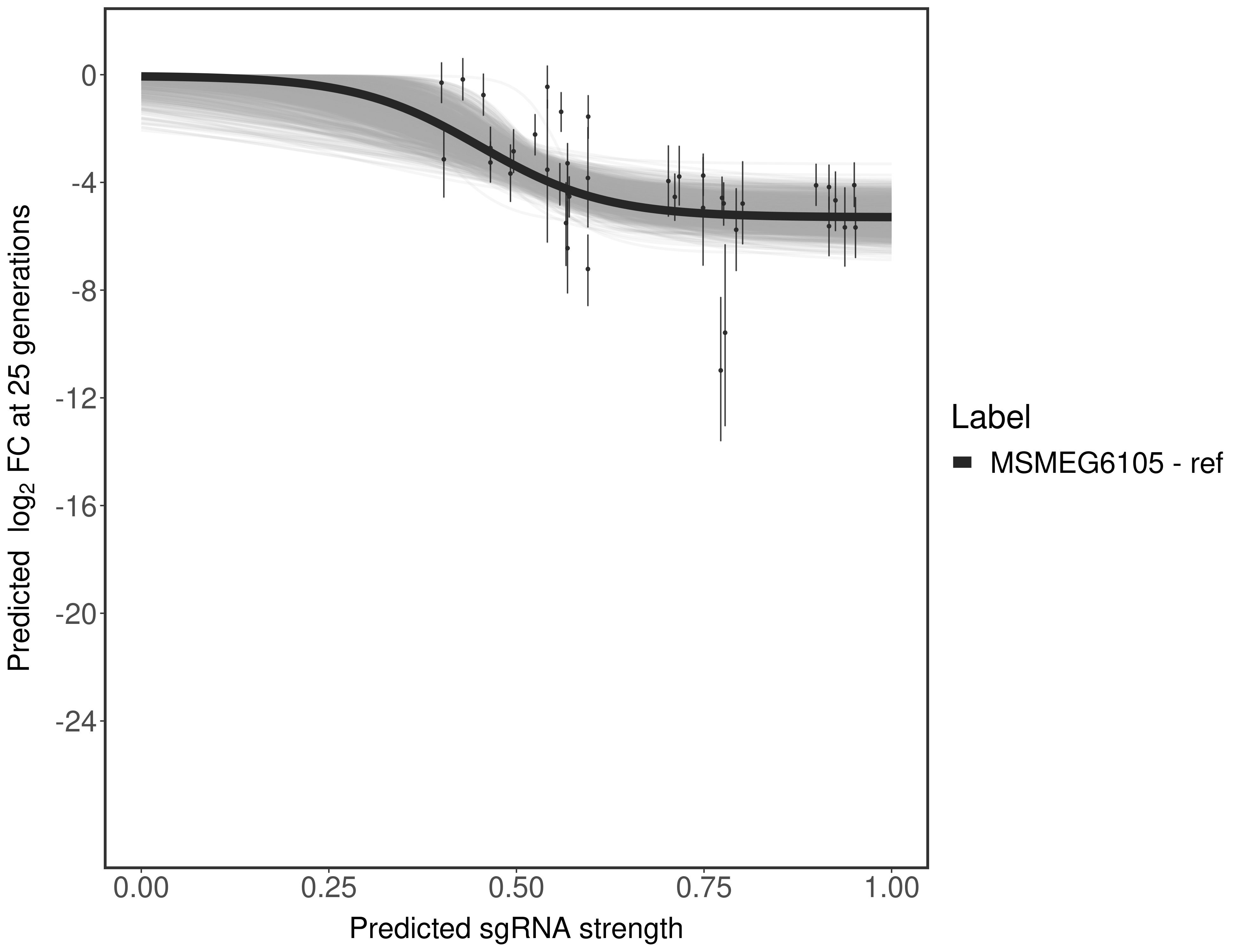 Experiment: We designed an M. tuberculosis CRISPRi library (RLC12) to target all annotated Mtb genes with single guide RNAs (sgRNAs) of varying predicted knockdown efficiencies.