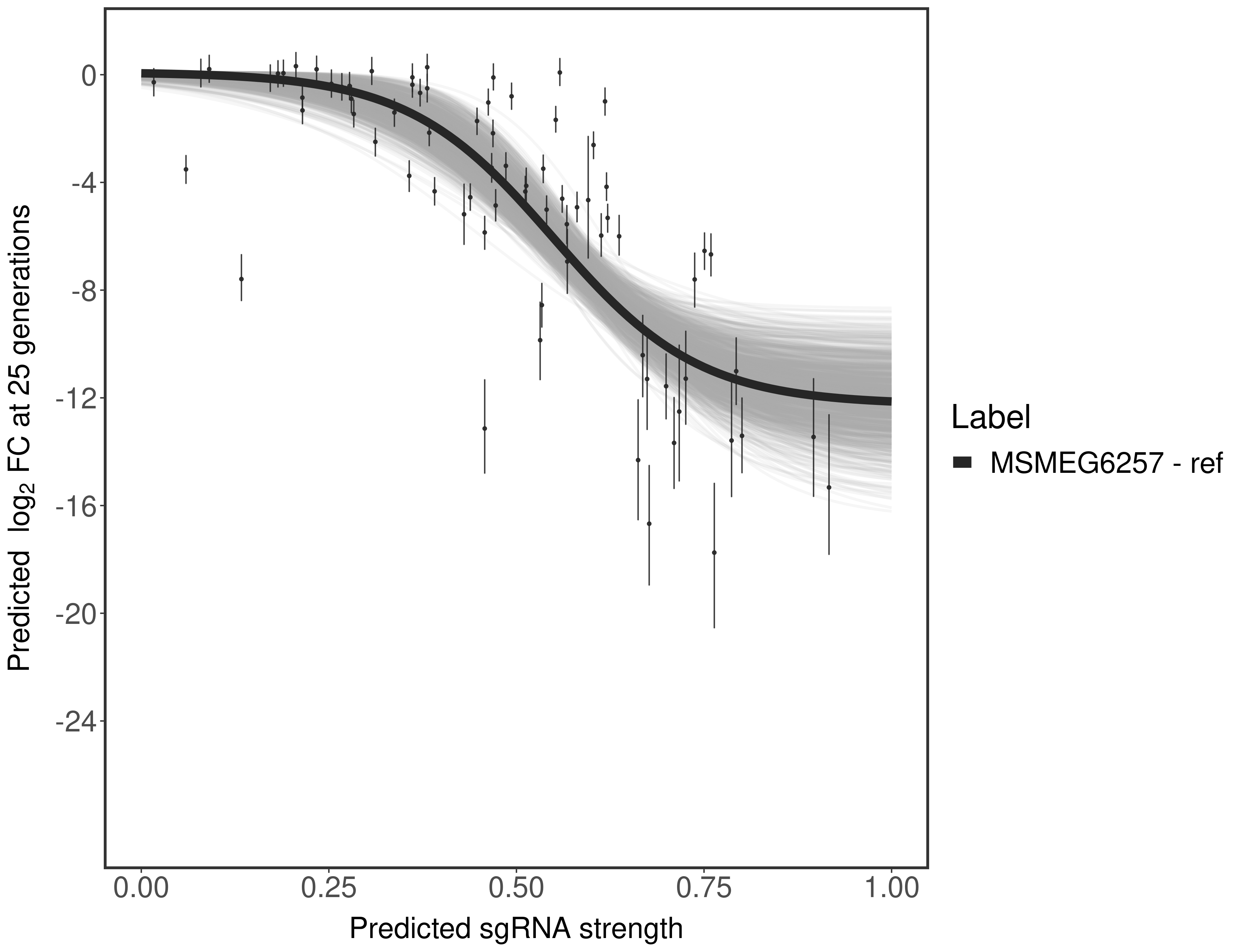 Experiment: We designed an M. tuberculosis CRISPRi library (RLC12) to target all annotated Mtb genes with single guide RNAs (sgRNAs) of varying predicted knockdown efficiencies.