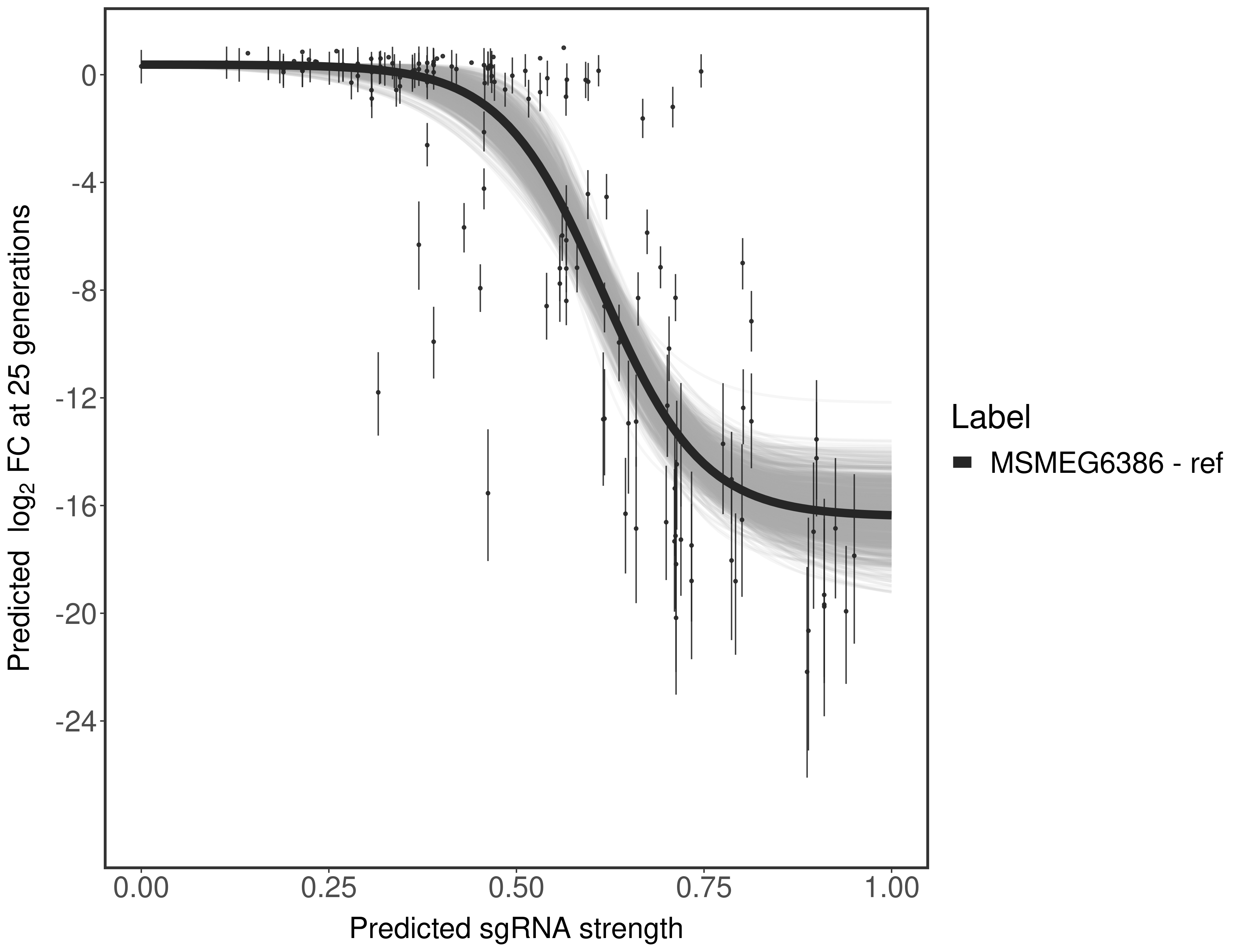 Experiment: We designed an M. tuberculosis CRISPRi library (RLC12) to target all annotated Mtb genes with single guide RNAs (sgRNAs) of varying predicted knockdown efficiencies.