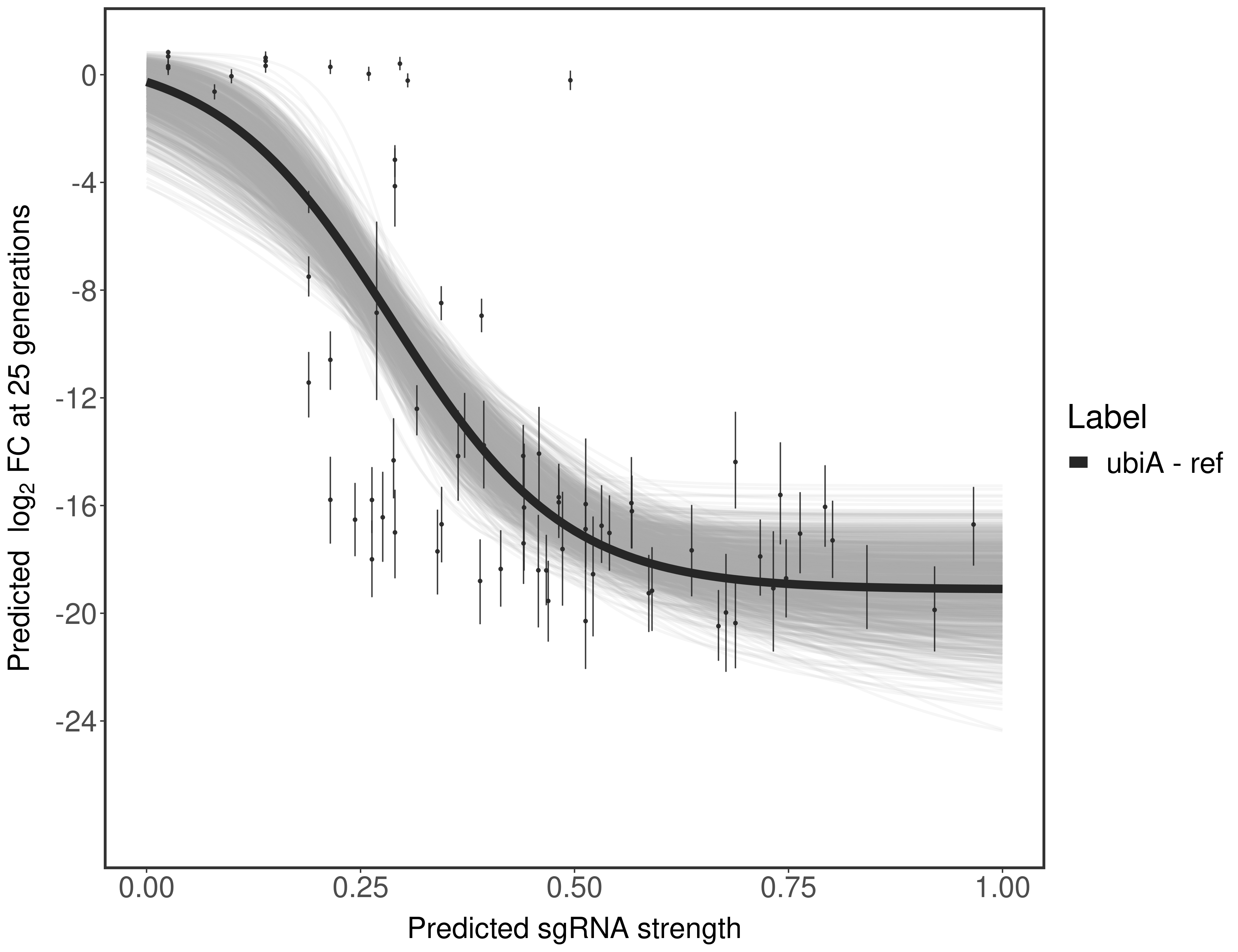 In order to quantify gene vulnerability, data were subsequently analyzed with a hierarchical model at the sgRNA level (two-line model) and gene level (Hill curve). The vulnerability quantification is shown below. [More information]