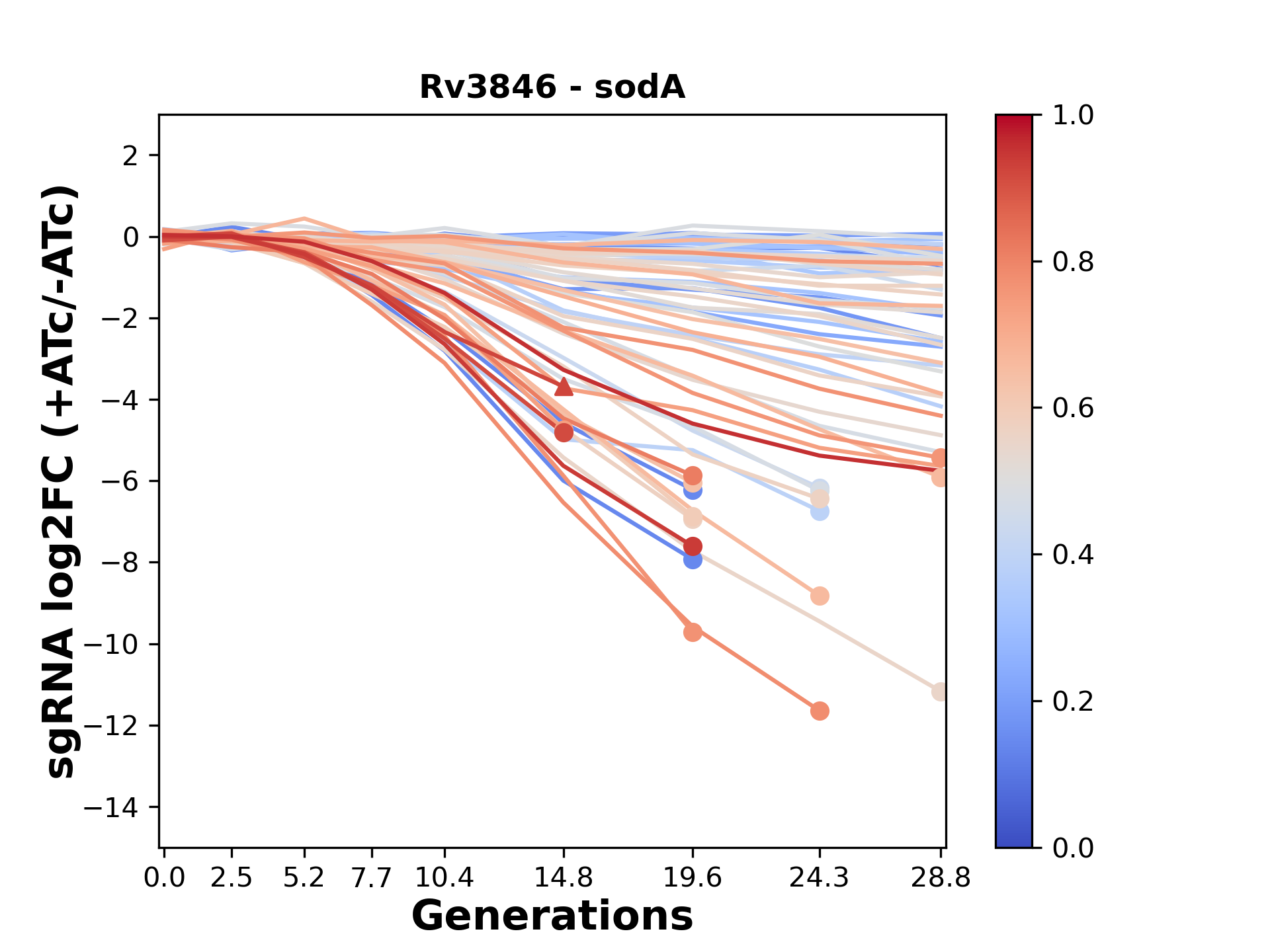 Experiment: We designed an M. tuberculosis CRISPRi library (RLC12) to target all annotated Mtb genes with single guide RNAs (sgRNAs) of varying predicted knockdown efficiencies.