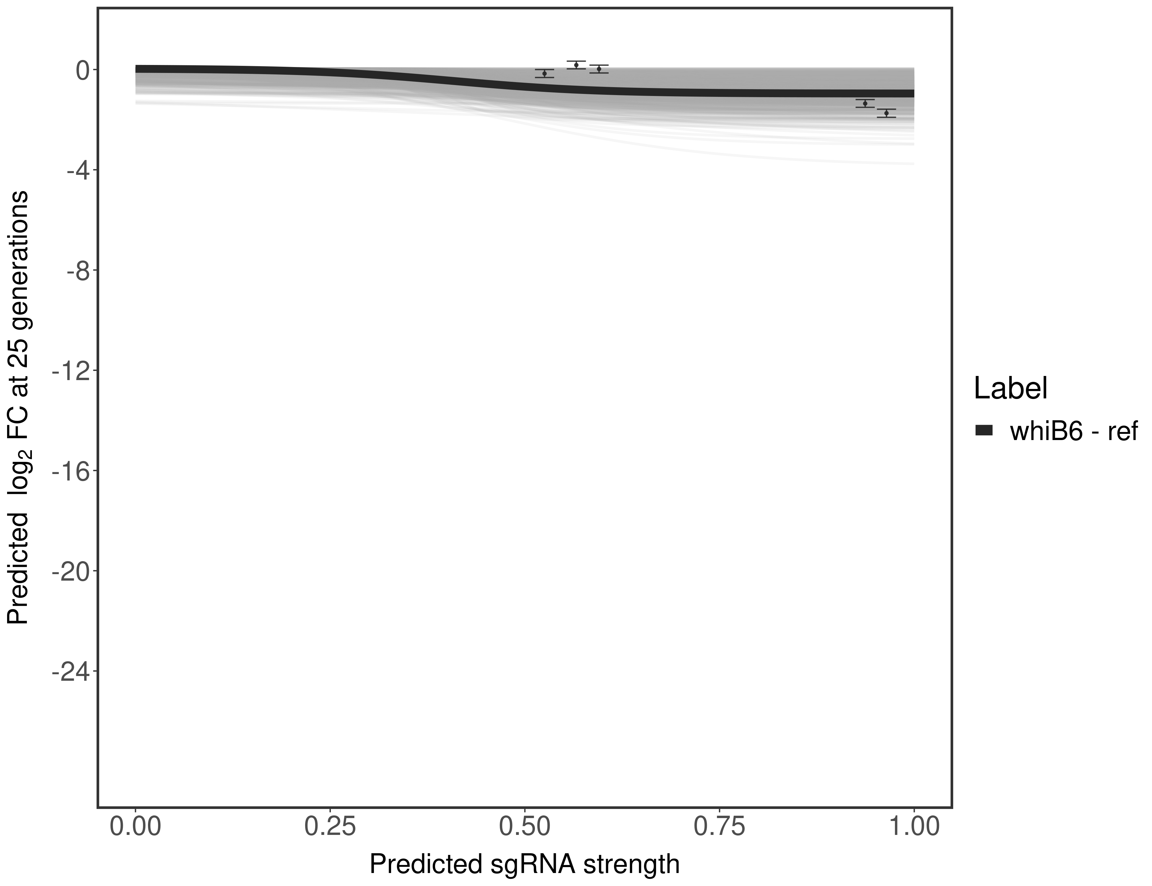 Here, we show sgRNA log2 fold-change values (L2FC) (plus versus minus ATc) over consecutive generations for sgRNAs targeting the gene you selected.