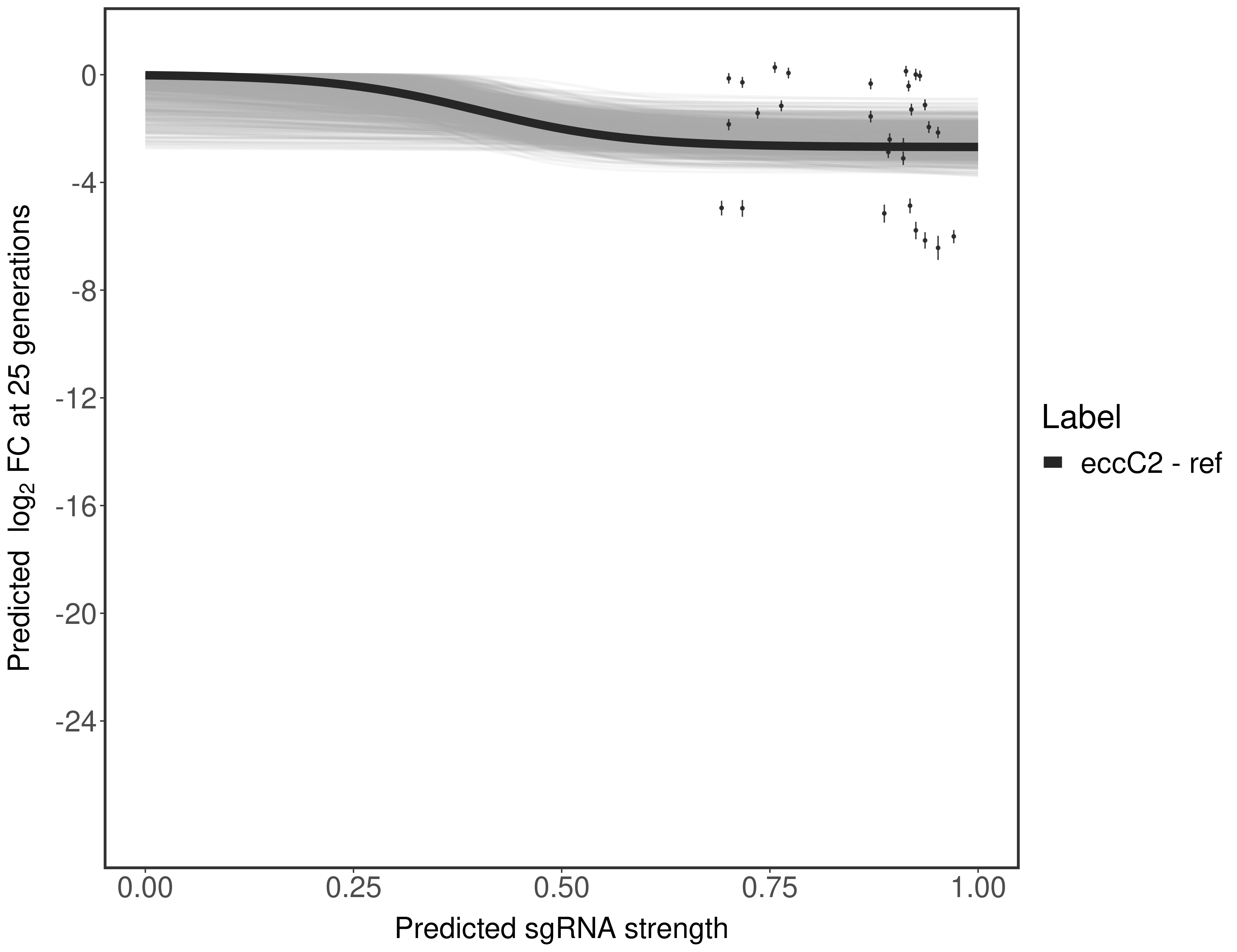 In order to quantify gene vulnerability, data were subsequently analyzed with a hierarchical model at the sgRNA level (two-line model) and gene level (Hill curve). The vulnerability quantification is shown below. [More information]