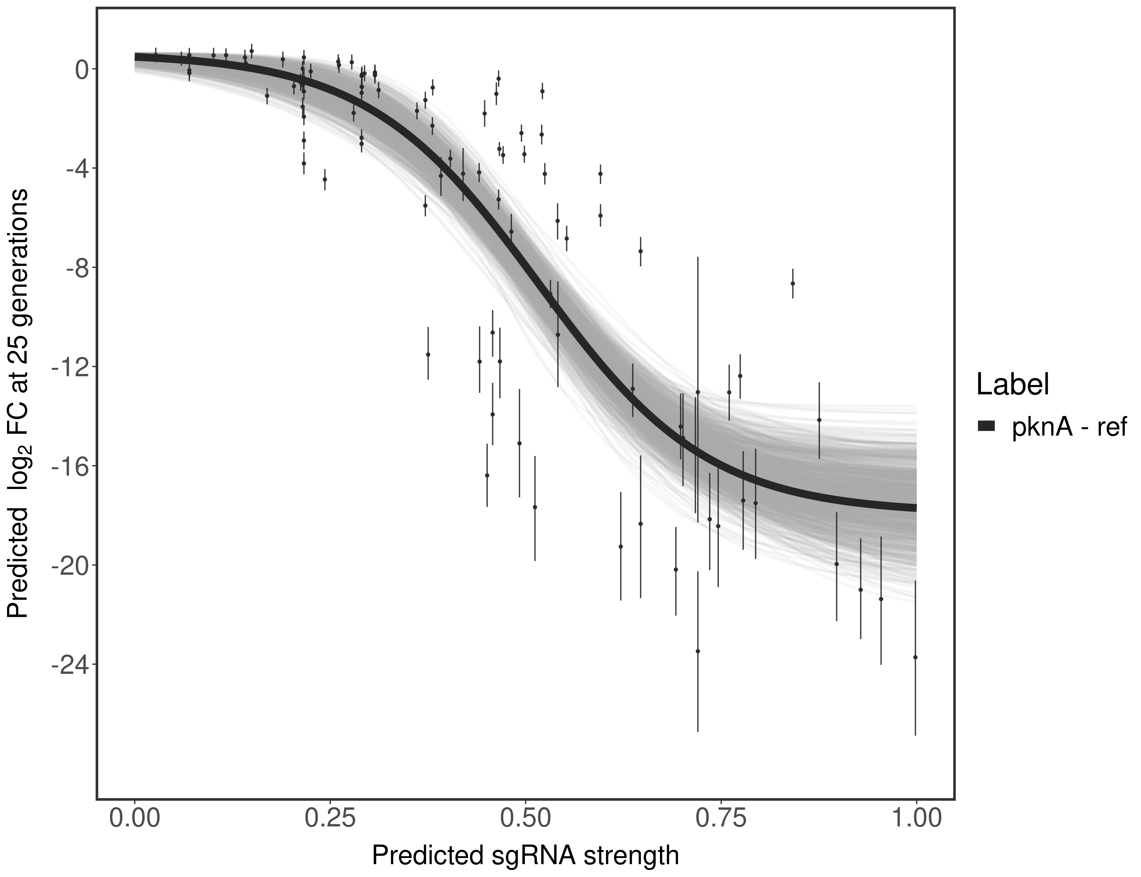 Experiment: We designed an M. tuberculosis CRISPRi library (RLC12) to target all annotated Mtb genes with single guide RNAs (sgRNAs) of varying predicted knockdown efficiencies.