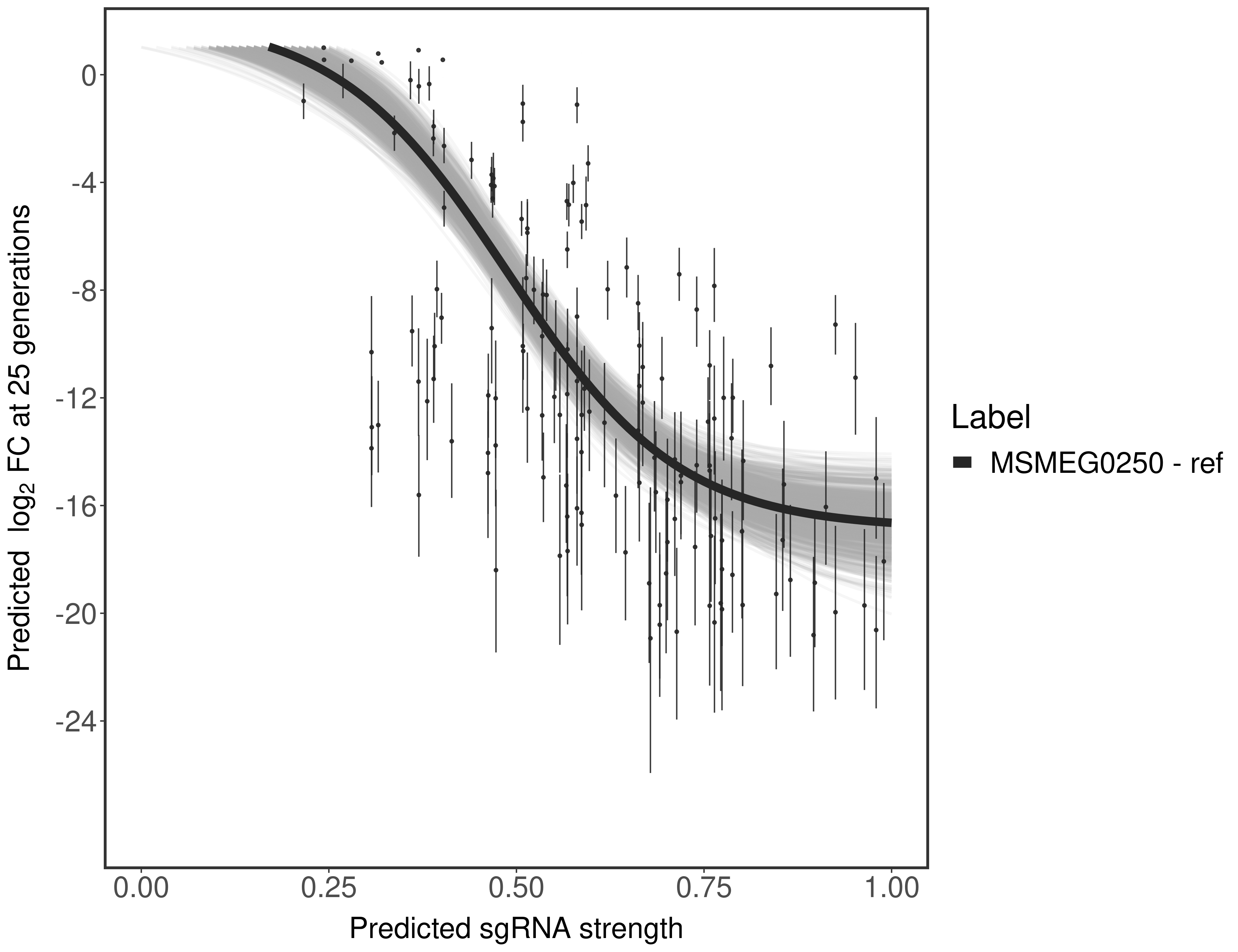 Experiment: We designed an M. tuberculosis CRISPRi library (RLC12) to target all annotated Mtb genes with single guide RNAs (sgRNAs) of varying predicted knockdown efficiencies.