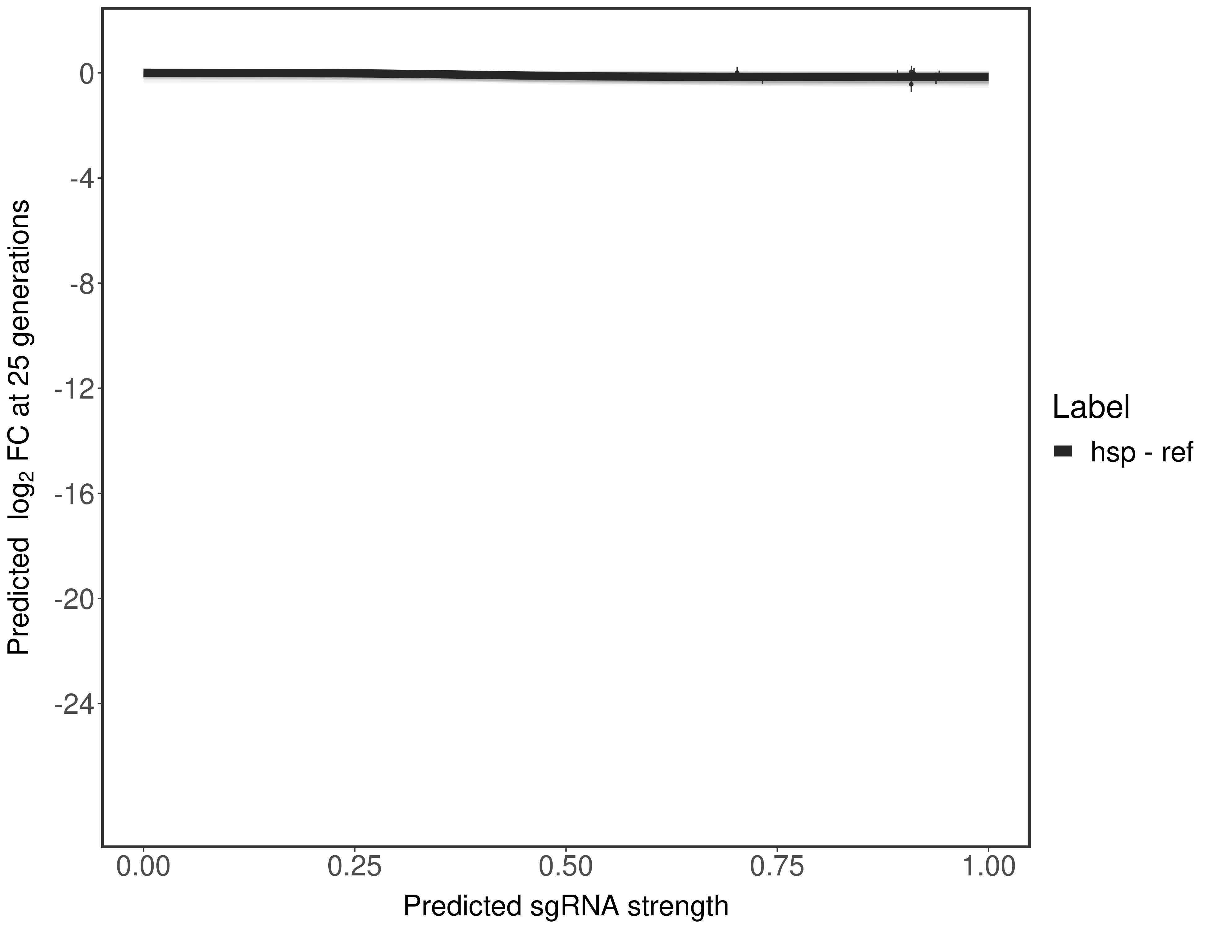 sgRNAs are color-coded based on their predicted strength from blue (strength=0; weak) to red (strength=1; strong).