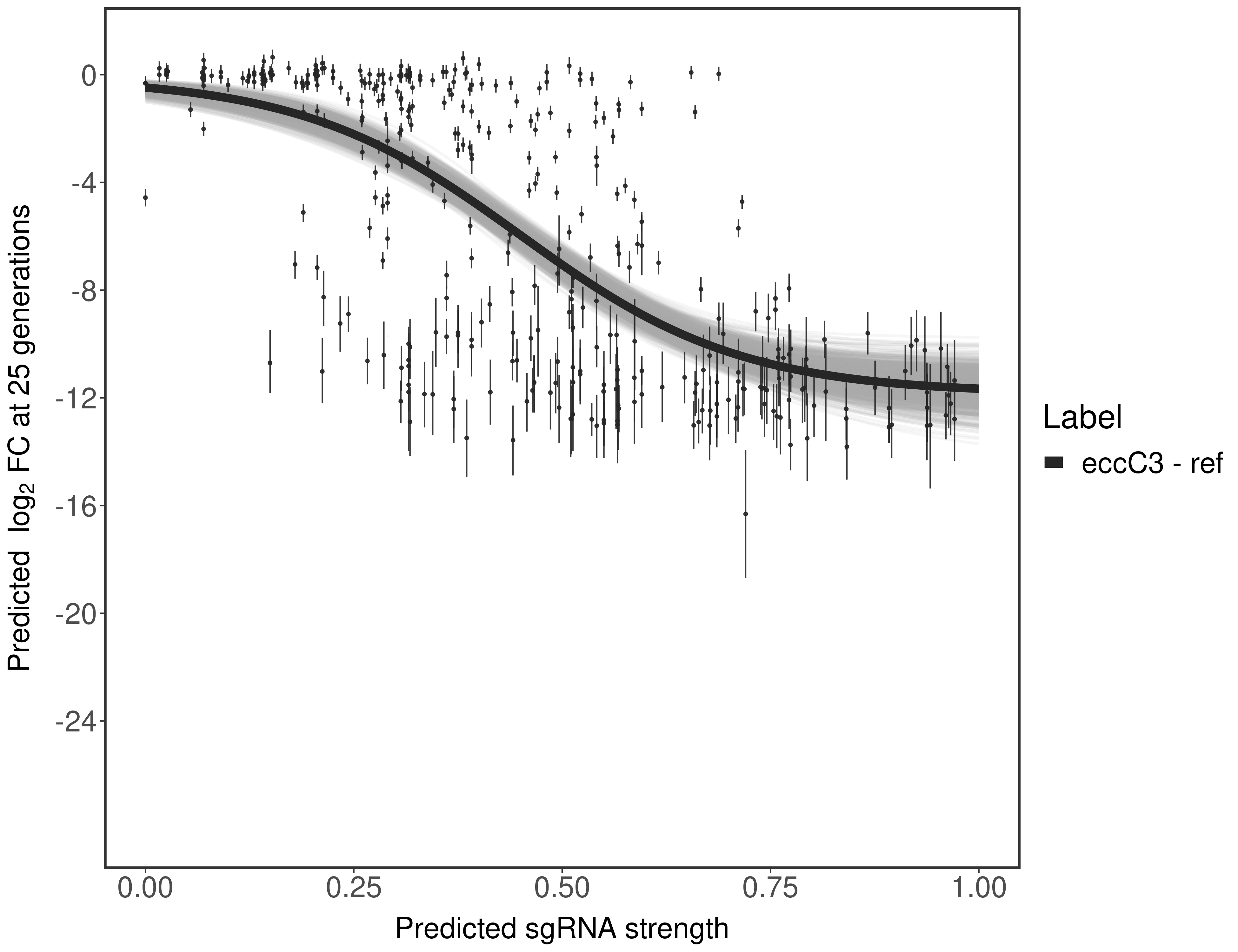 In order to quantify gene vulnerability, data were subsequently analyzed with a hierarchical model at the sgRNA level (two-line model) and gene level (Hill curve). The vulnerability quantification is shown below. [More information]