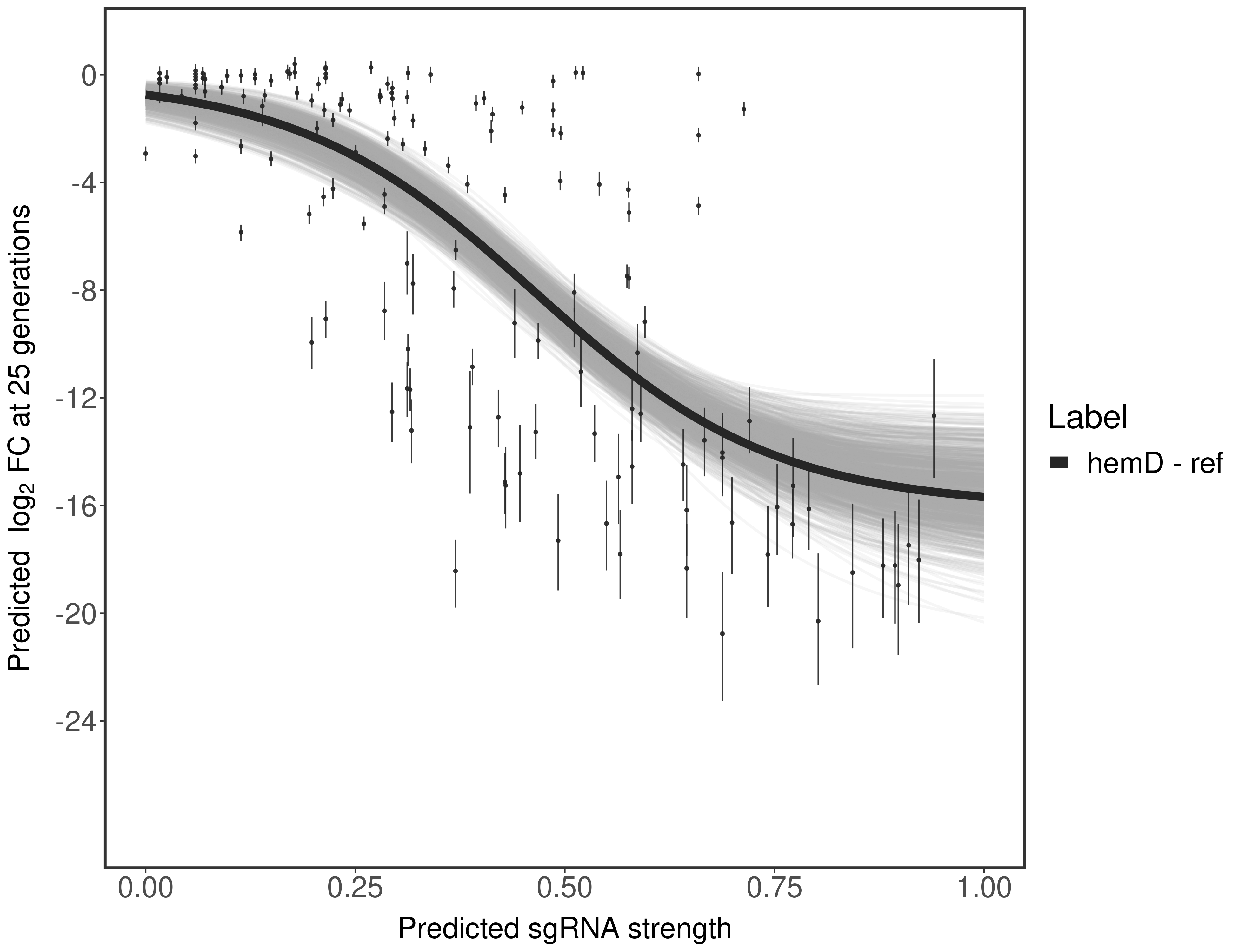 In order to quantify gene vulnerability, data were subsequently analyzed with a hierarchical model at the sgRNA level (two-line model) and gene level (Hill curve). The vulnerability quantification is shown below. [More information]