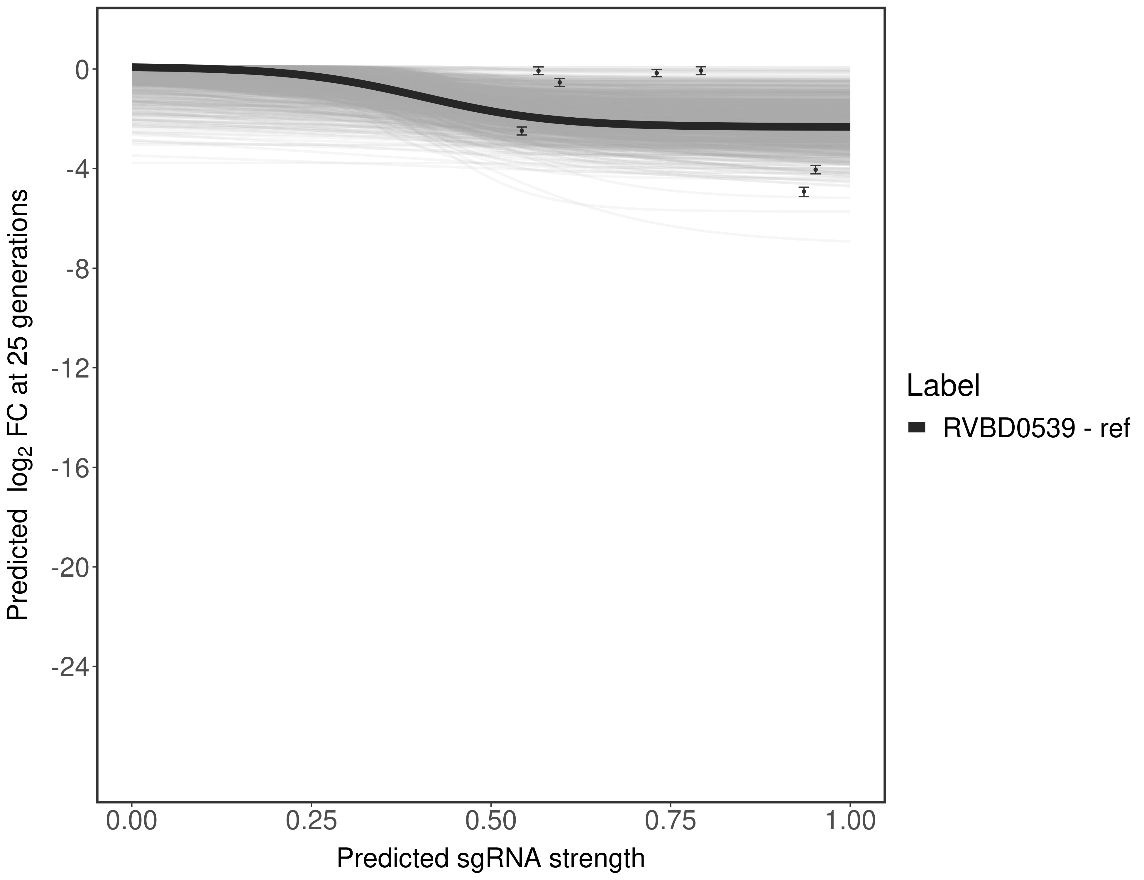 In order to quantify gene vulnerability, data were subsequently analyzed with a hierarchical model at the sgRNA level (two-line model) and gene level (Hill curve). The vulnerability quantification is shown below. [More information]