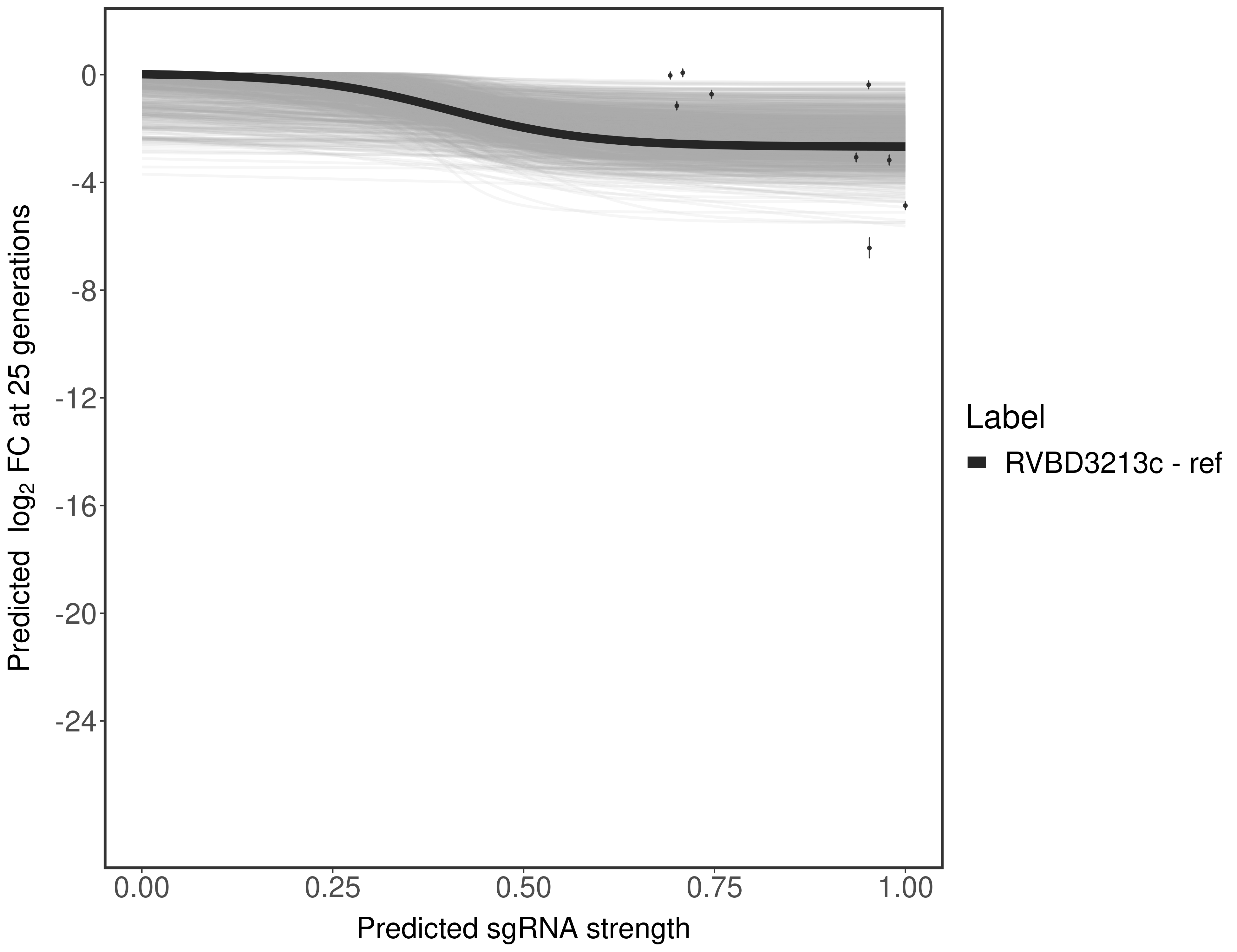 In order to quantify gene vulnerability, data were subsequently analyzed with a hierarchical model at the sgRNA level (two-line model) and gene level (Hill curve). The vulnerability quantification is shown below. [More information]