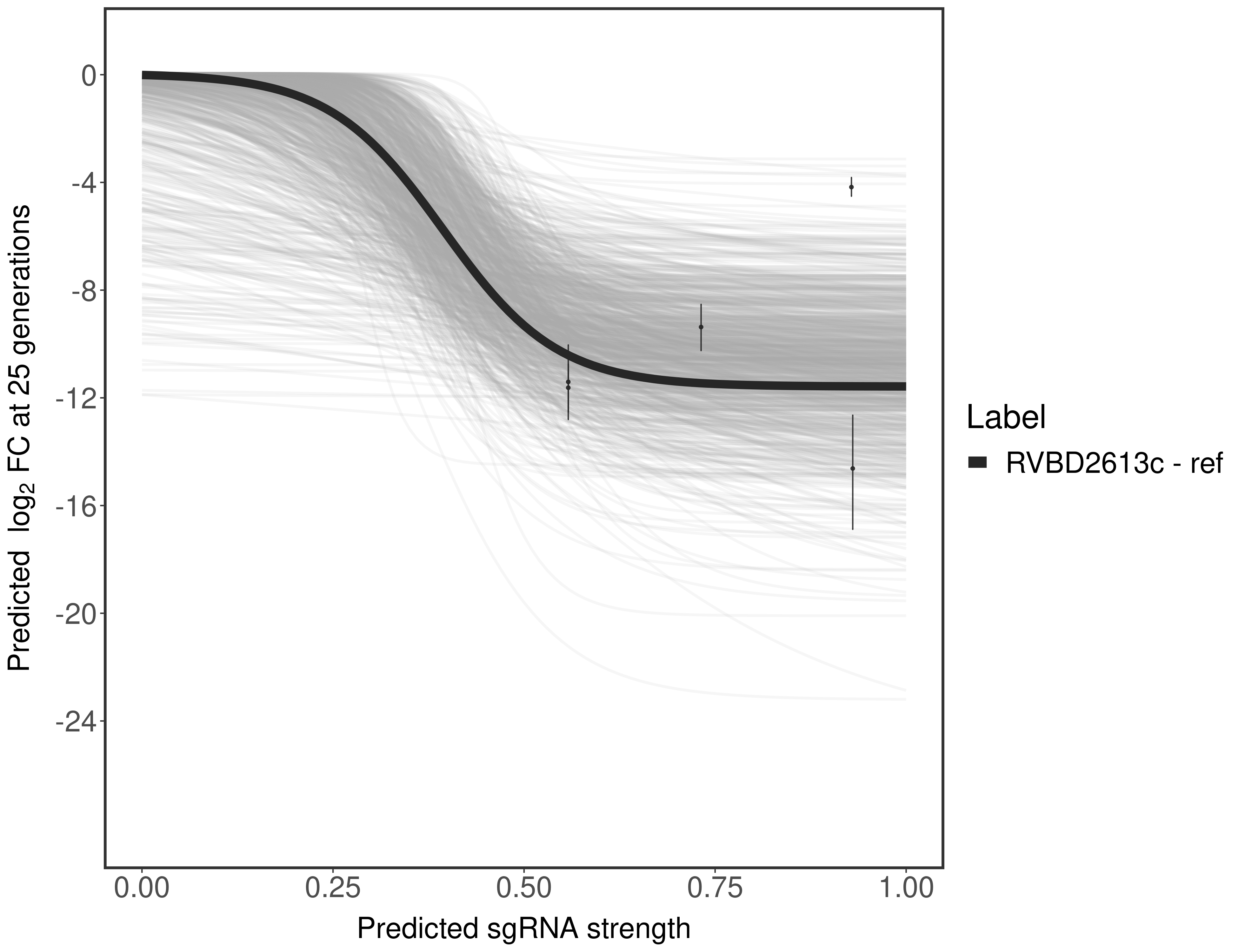 Experiment: We designed an M. tuberculosis CRISPRi library (RLC12) to target all annotated Mtb genes with single guide RNAs (sgRNAs) of varying predicted knockdown efficiencies.