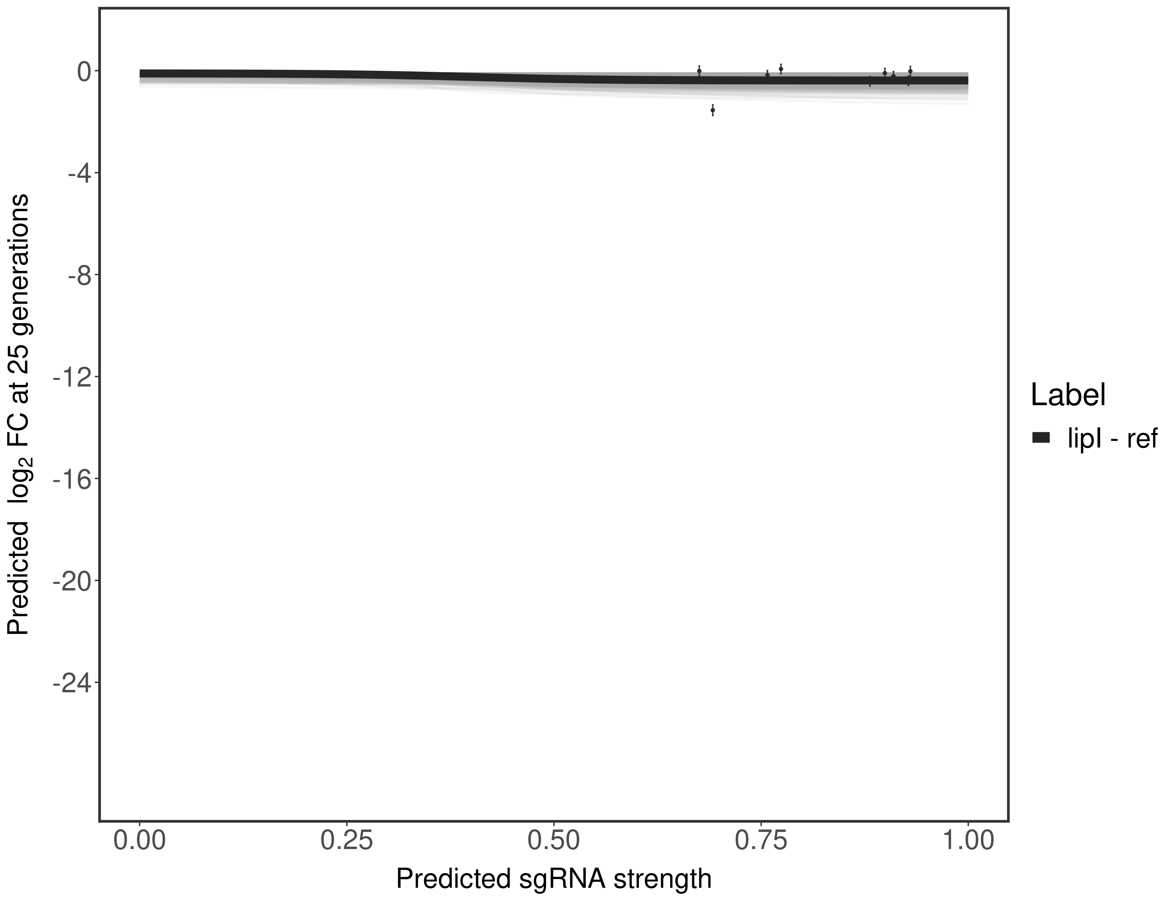 Here, we show sgRNA log2 fold-change values (L2FC) (plus versus minus ATc) over consecutive generations for sgRNAs targeting the gene you selected.