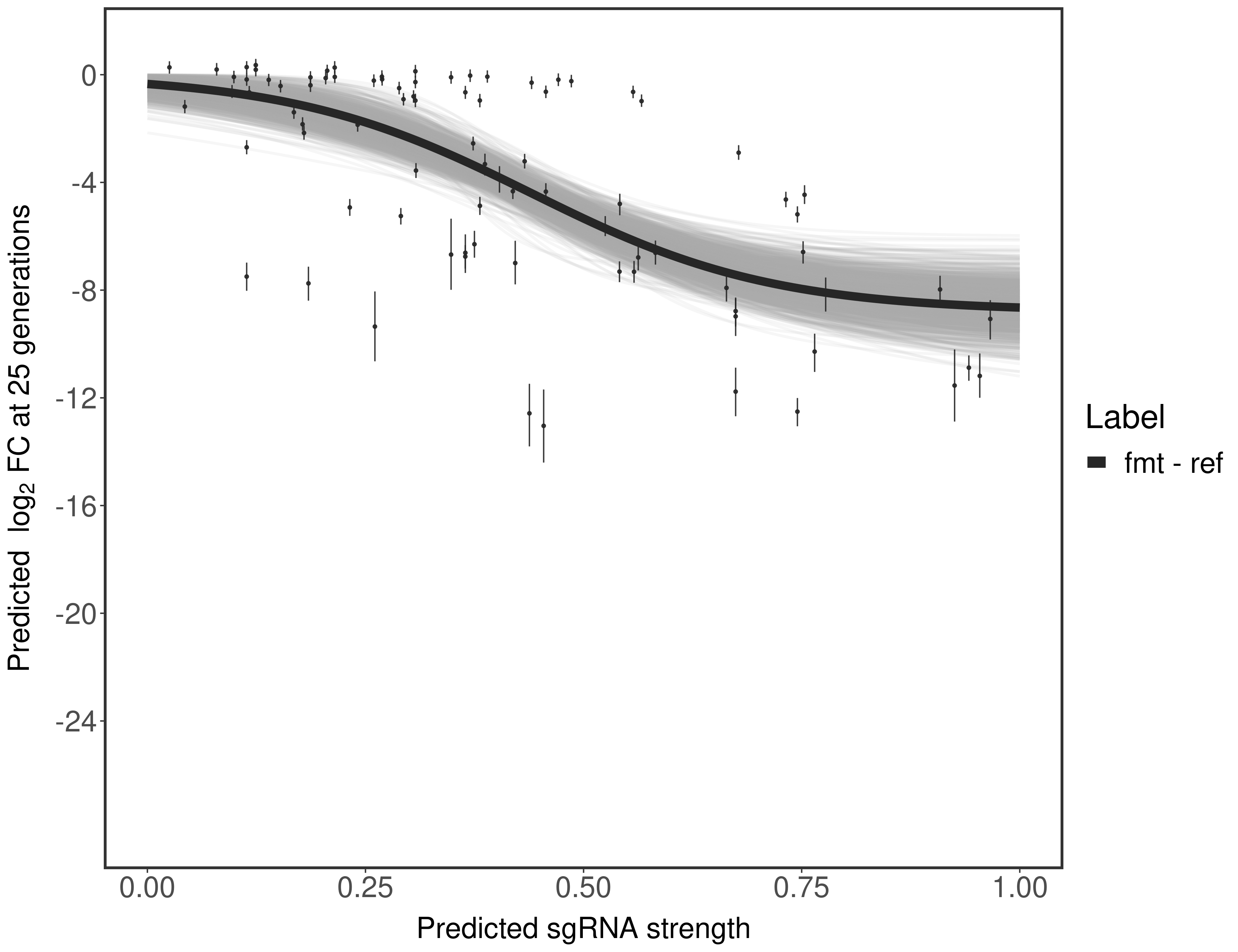 In order to quantify gene vulnerability, data were subsequently analyzed with a hierarchical model at the sgRNA level (two-line model) and gene level (Hill curve). The vulnerability quantification is shown below. [More information]