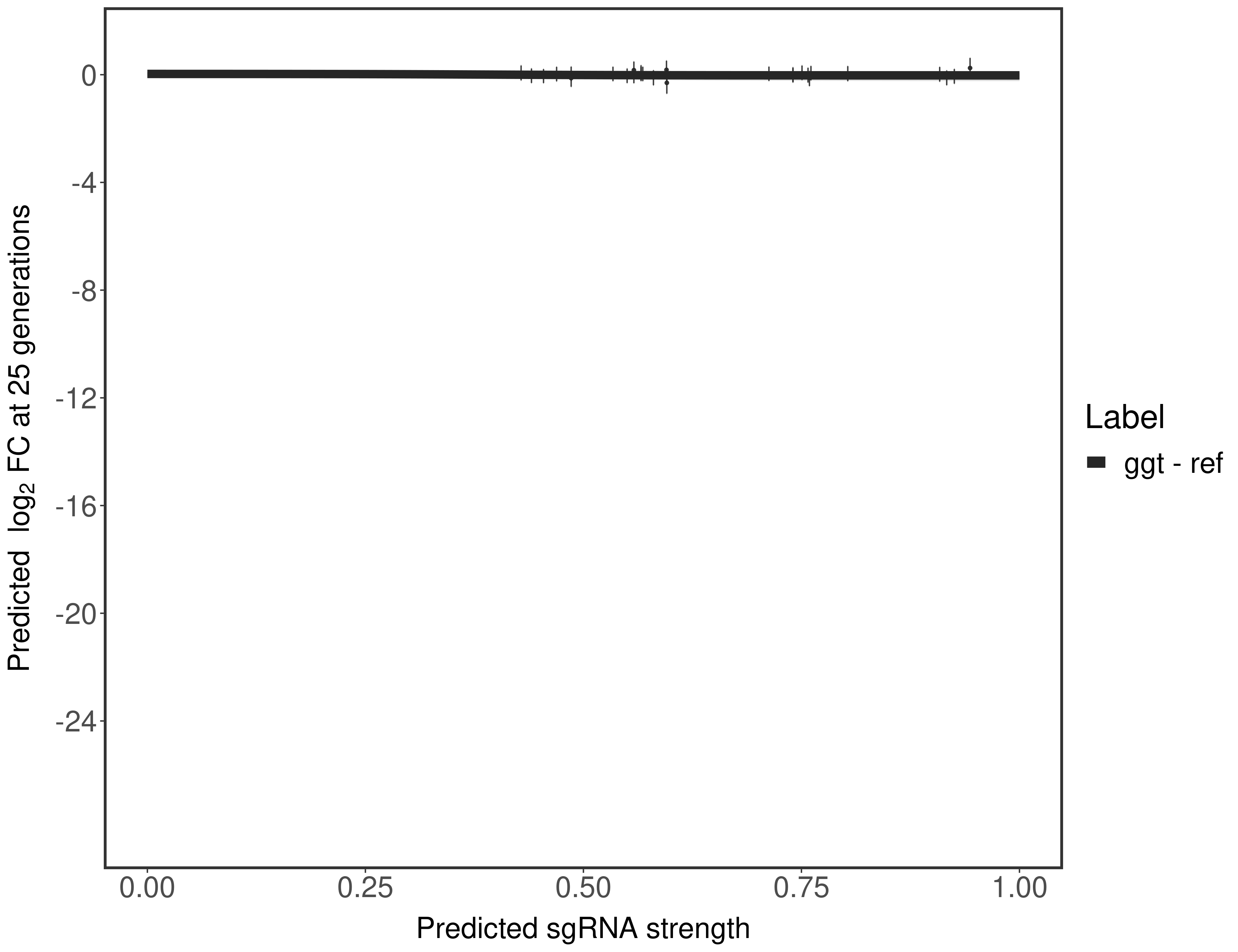 sgRNAs are color-coded based on their predicted strength from blue (strength=0; weak) to red (strength=1; strong).