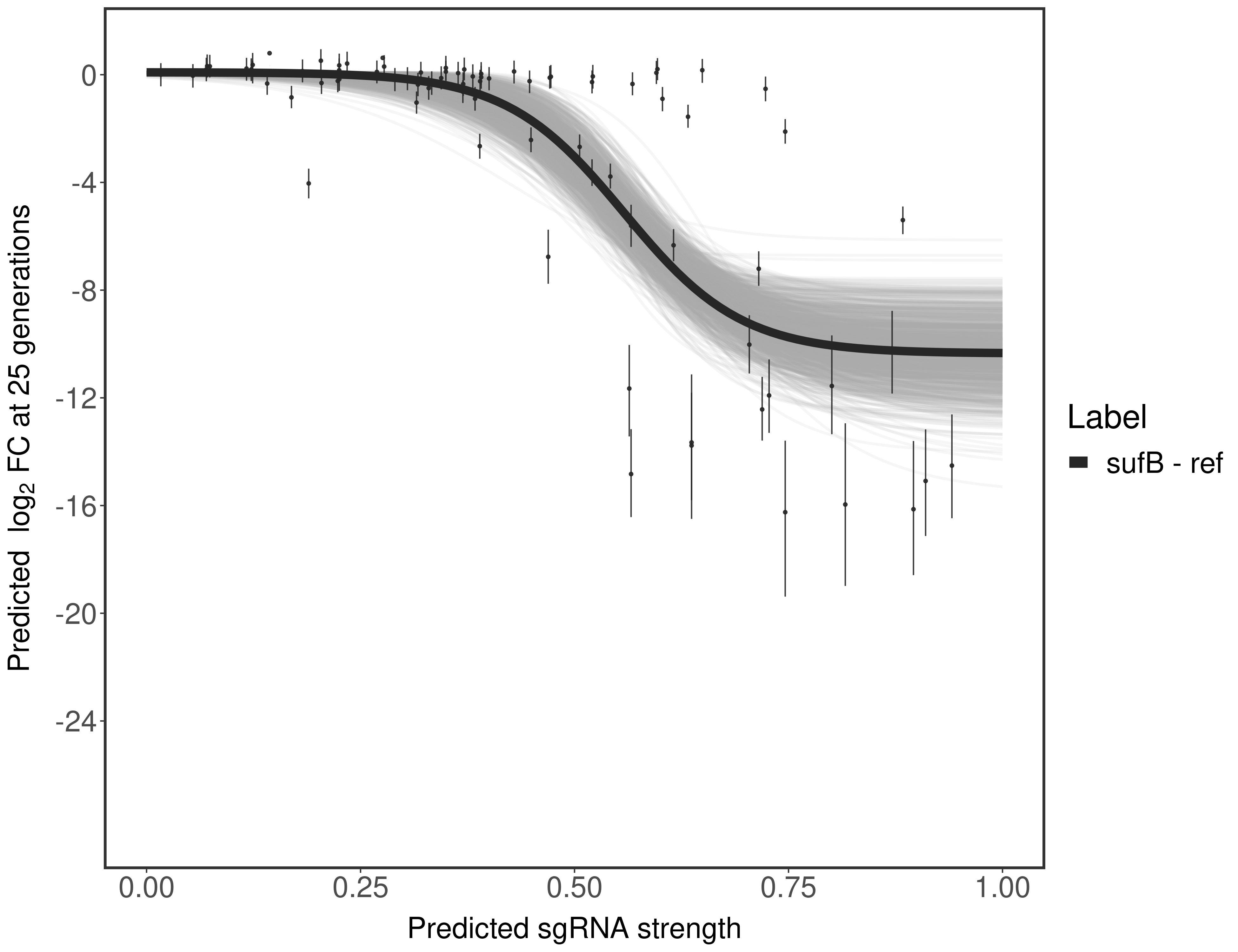 Here, we show sgRNA log2 fold-change values (L2FC) (plus versus minus ATc) over consecutive generations for sgRNAs targeting the gene you selected.
