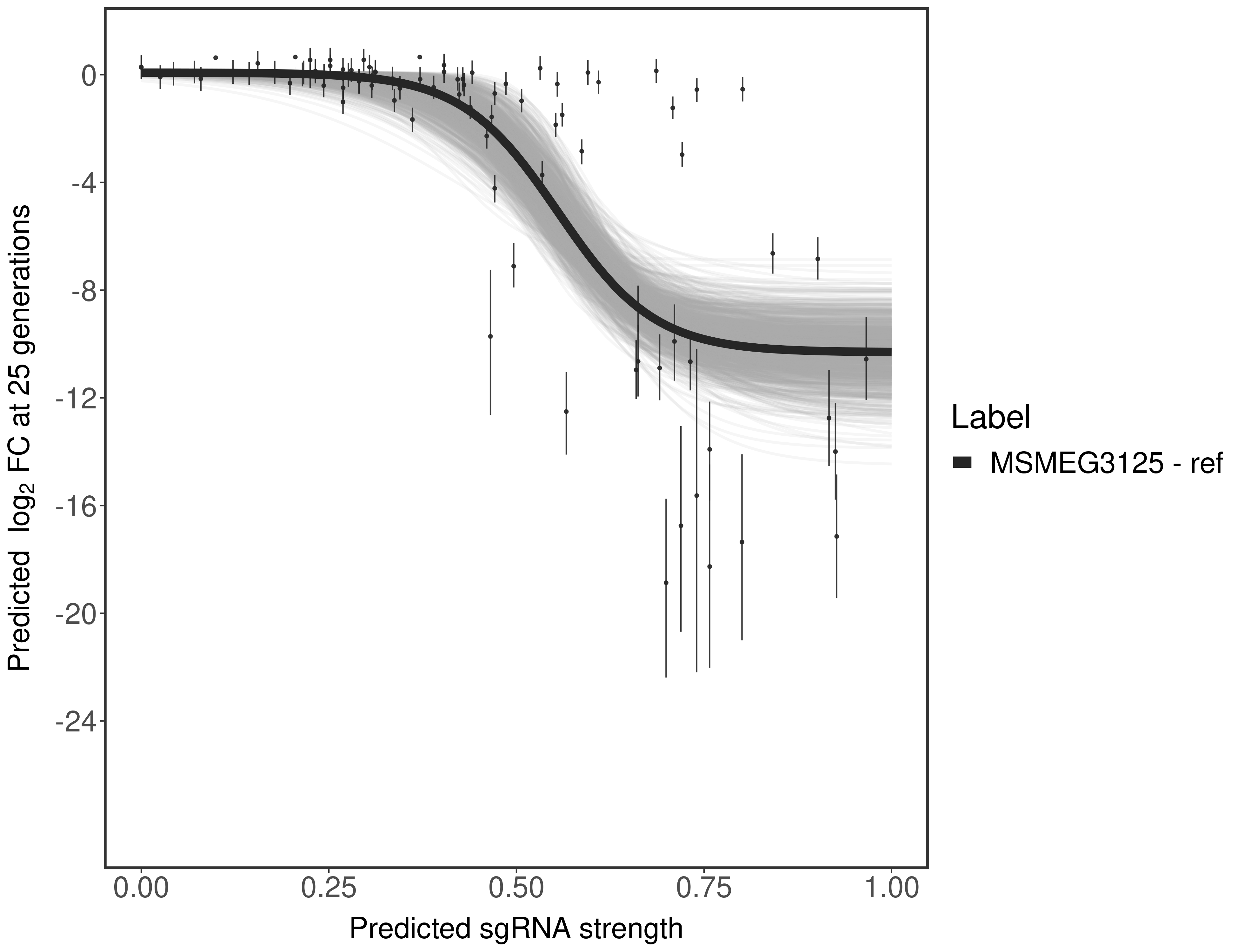 Experiment: We designed an M. tuberculosis CRISPRi library (RLC12) to target all annotated Mtb genes with single guide RNAs (sgRNAs) of varying predicted knockdown efficiencies.