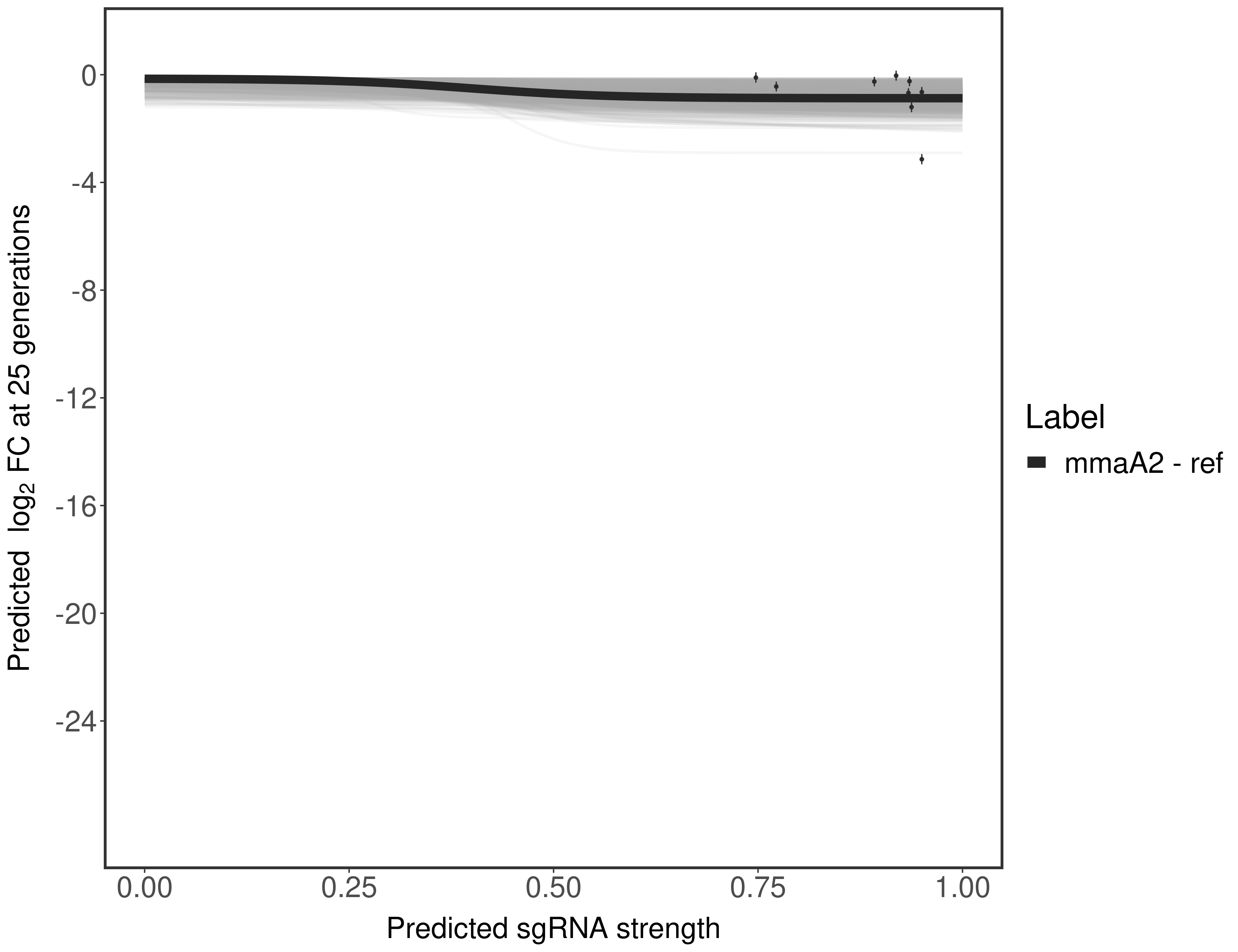 In order to quantify gene vulnerability, data were subsequently analyzed with a hierarchical model at the sgRNA level (two-line model) and gene level (Hill curve). The vulnerability quantification is shown below. [More information]
