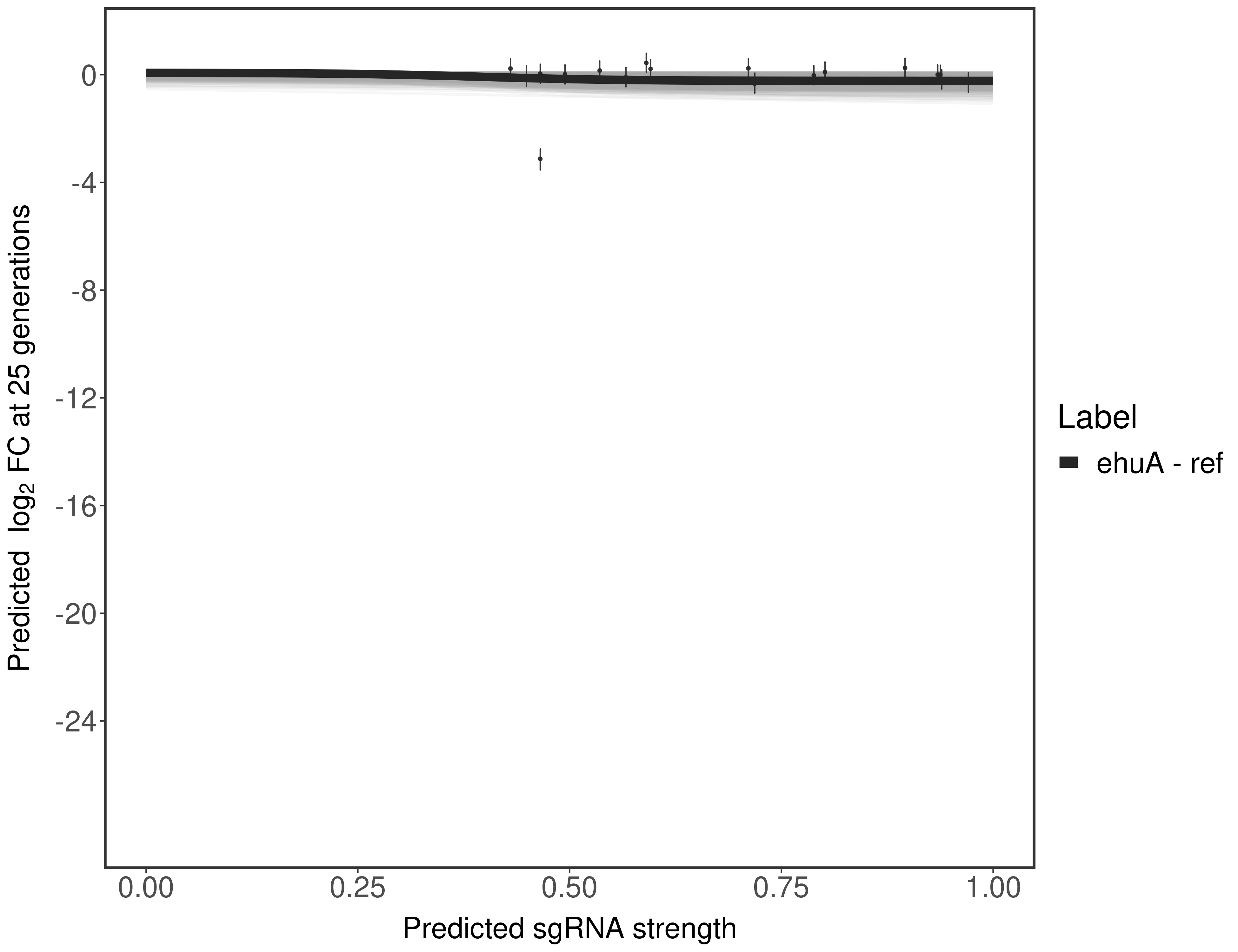 Here, we show sgRNA log2 fold-change values (L2FC) (plus versus minus ATc) over consecutive generations for sgRNAs targeting the gene you selected.