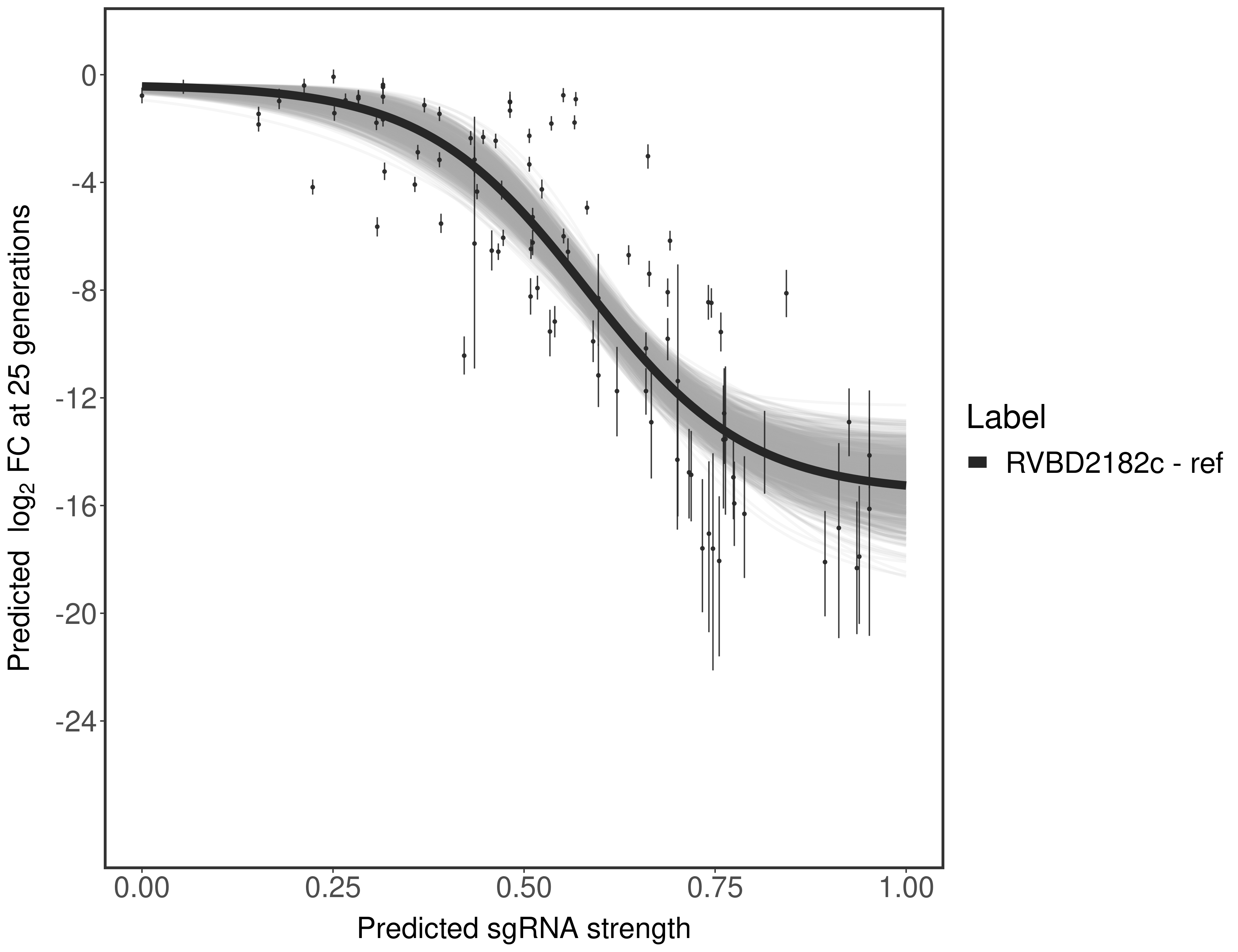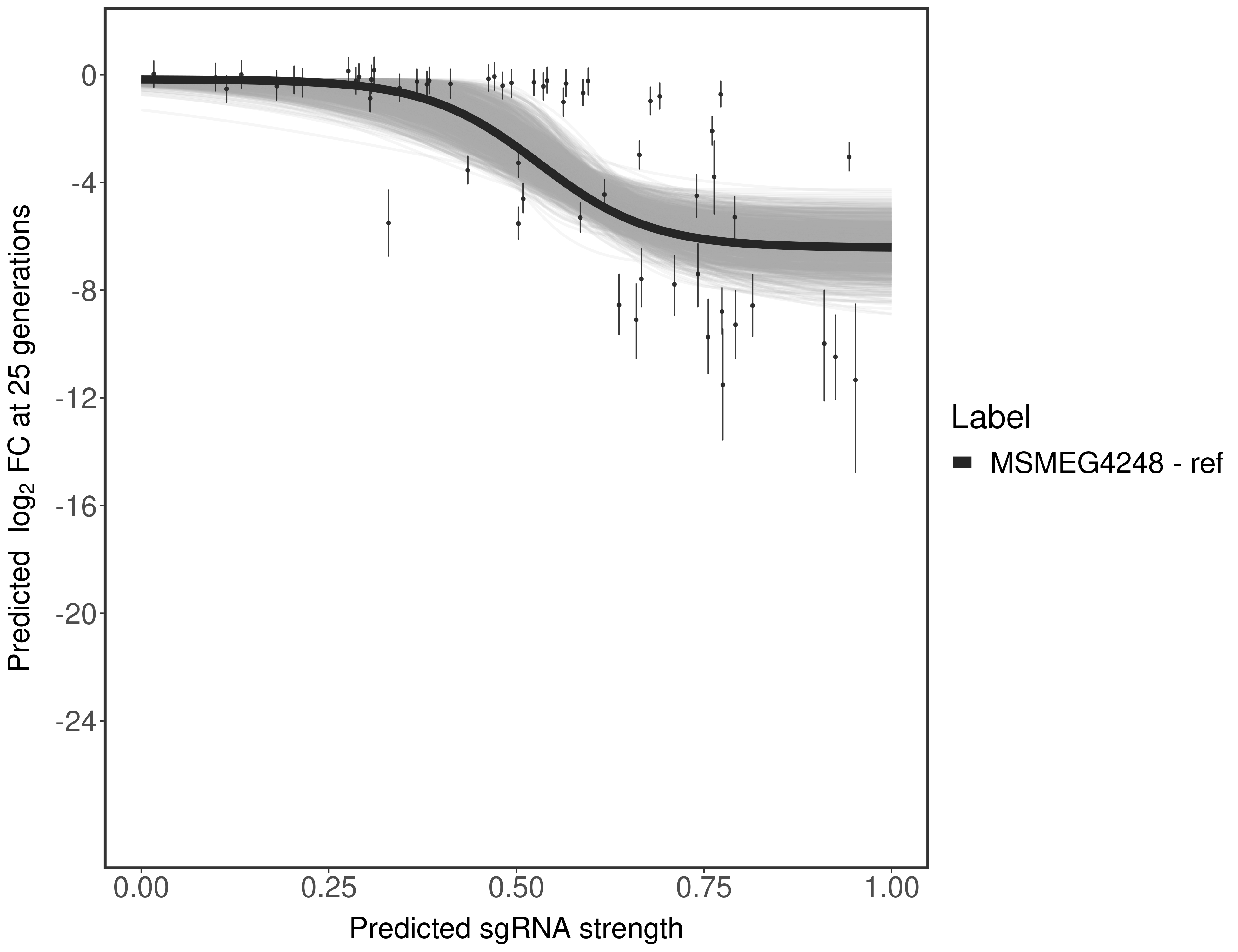 Experiment: We designed an M. tuberculosis CRISPRi library (RLC12) to target all annotated Mtb genes with single guide RNAs (sgRNAs) of varying predicted knockdown efficiencies.
