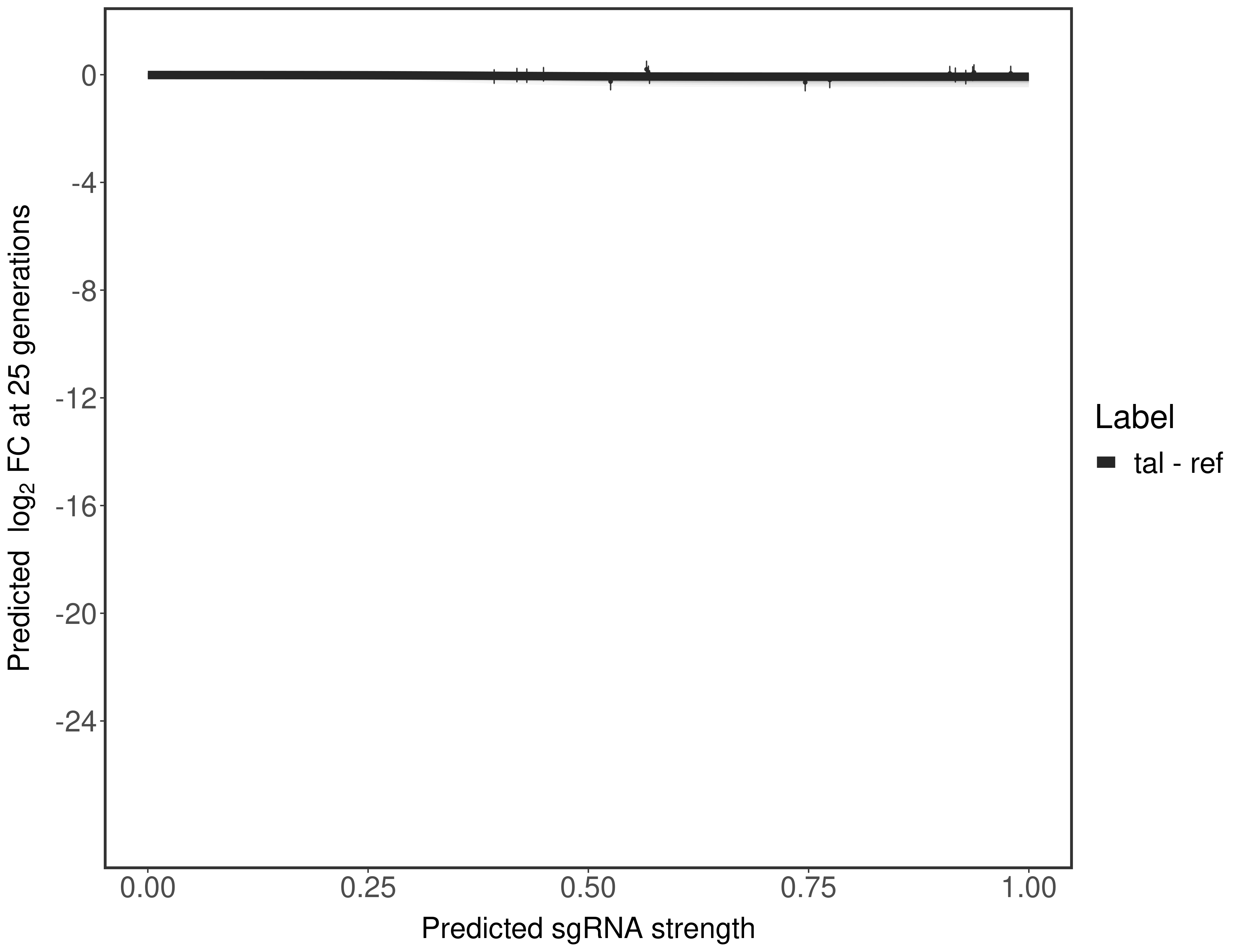 sgRNAs are color-coded based on their predicted strength from blue (strength=0; weak) to red (strength=1; strong).
