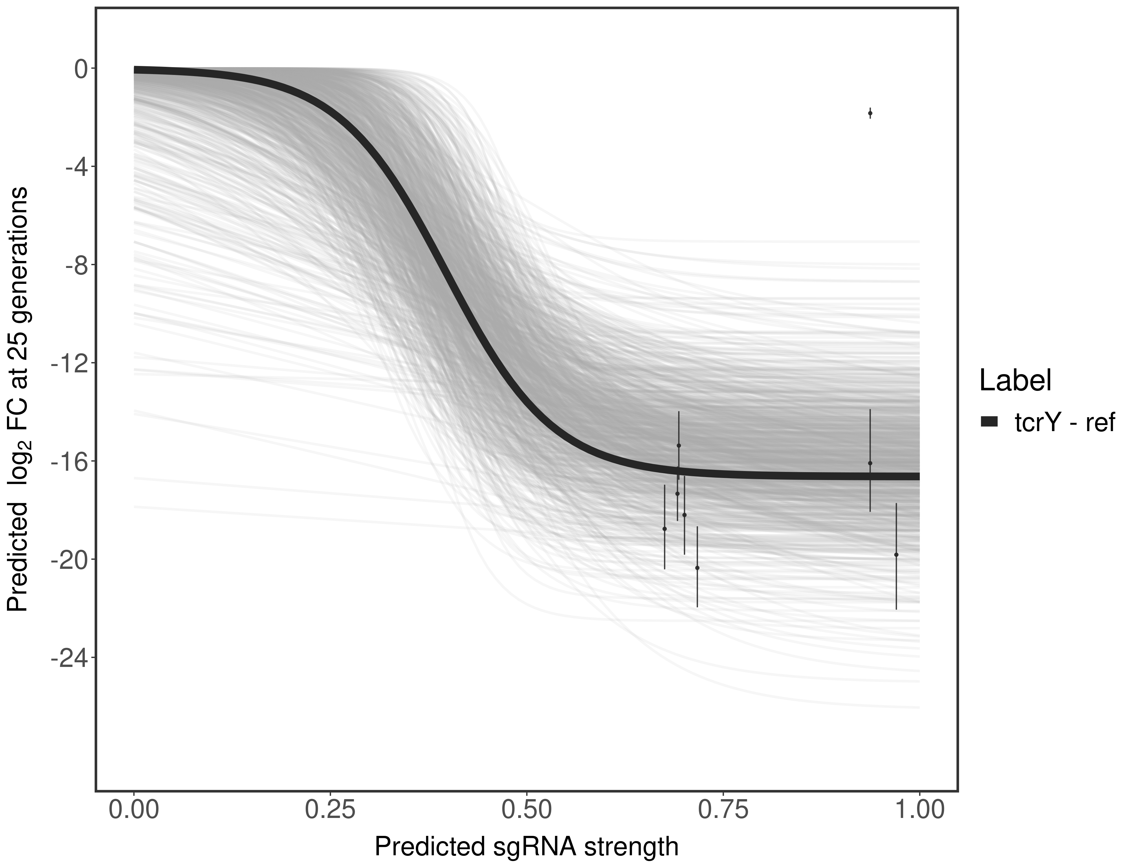 In order to quantify gene vulnerability, data were subsequently analyzed with a hierarchical model at the sgRNA level (two-line model) and gene level (Hill curve). The vulnerability quantification is shown below. [More information]