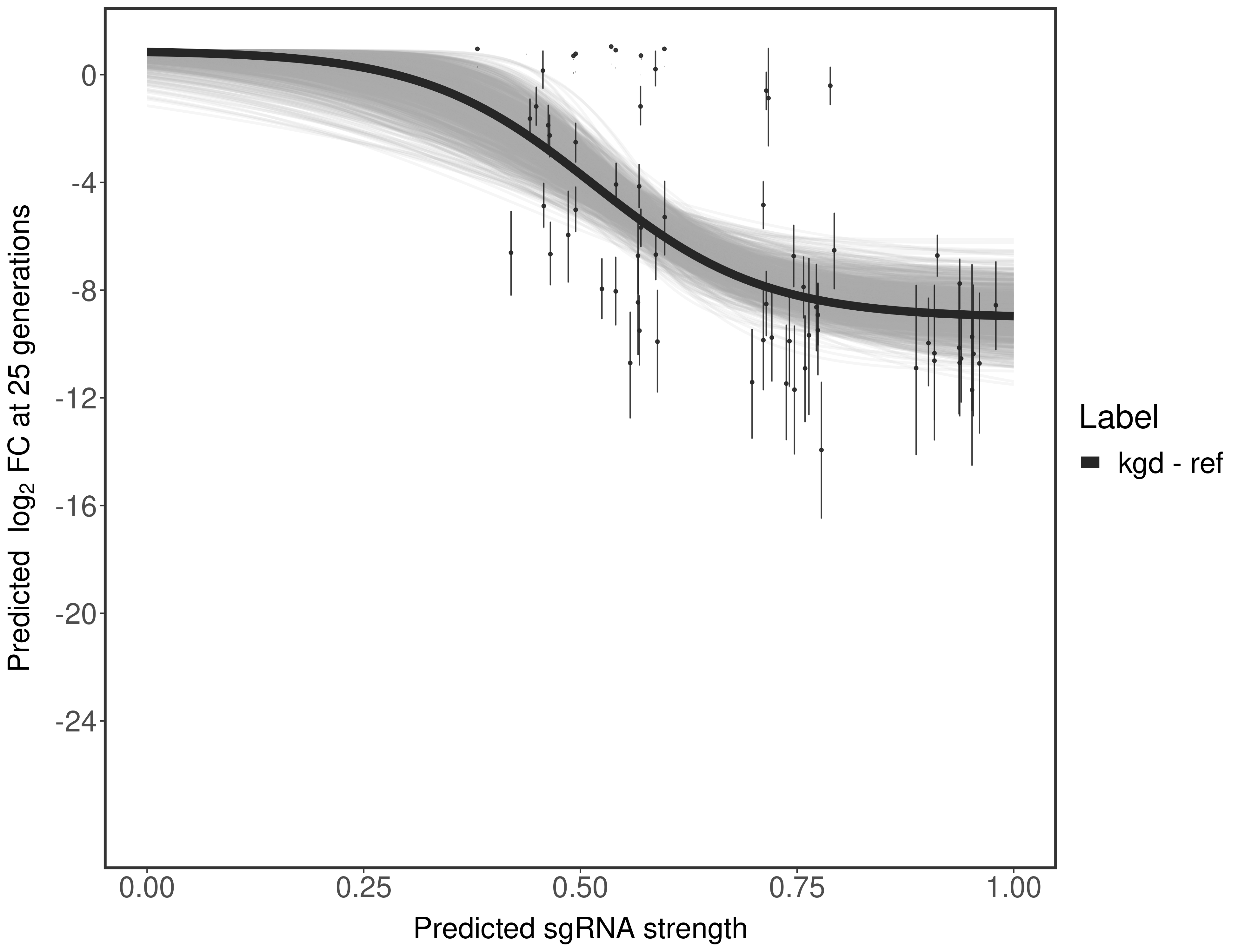 In order to quantify gene vulnerability, data were subsequently analyzed with a hierarchical model at the sgRNA level (two-line model) and gene level (Hill curve). The vulnerability quantification is shown below. [More information]