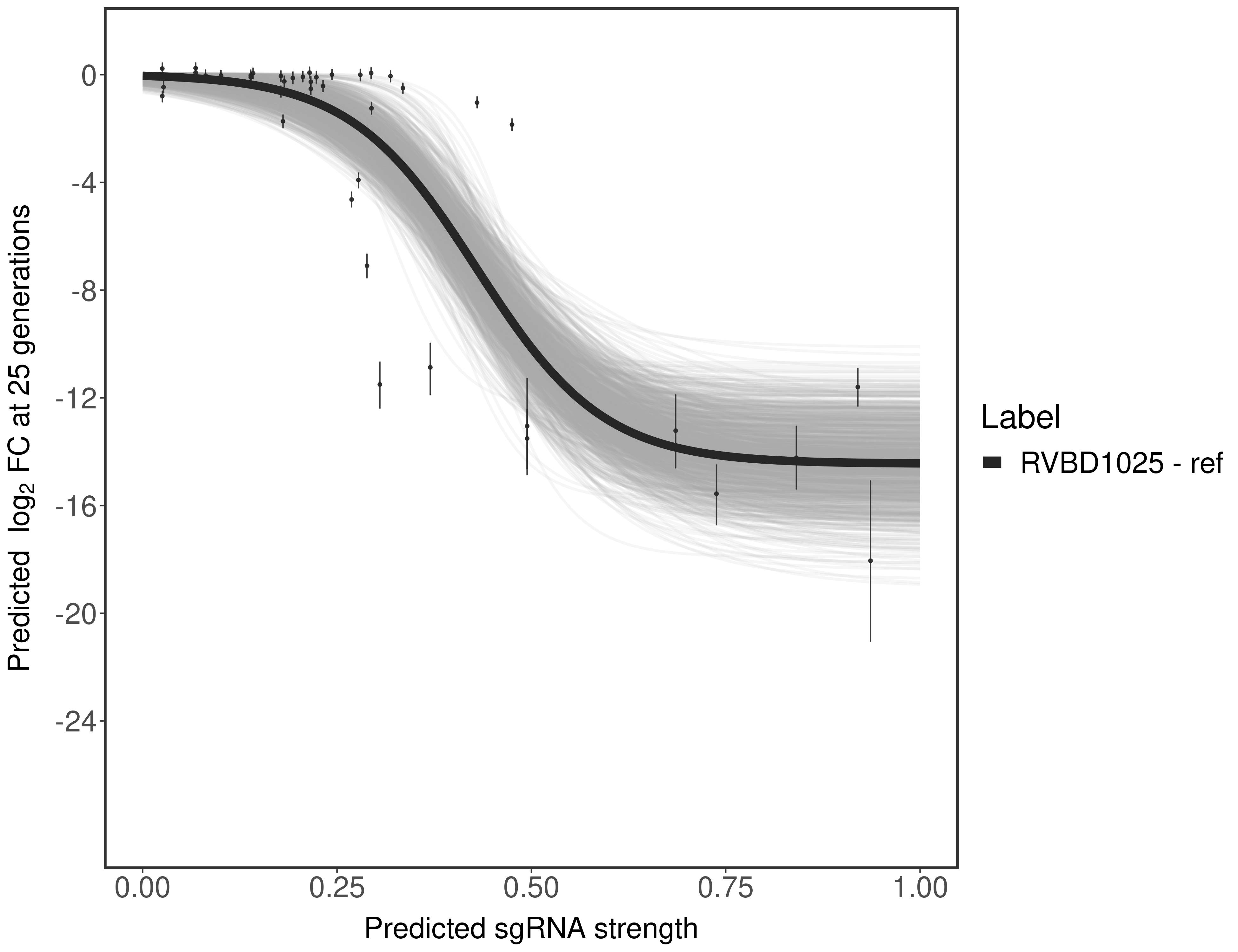 In order to quantify gene vulnerability, data were subsequently analyzed with a hierarchical model at the sgRNA level (two-line model) and gene level (Hill curve). The vulnerability quantification is shown below. [More information]
