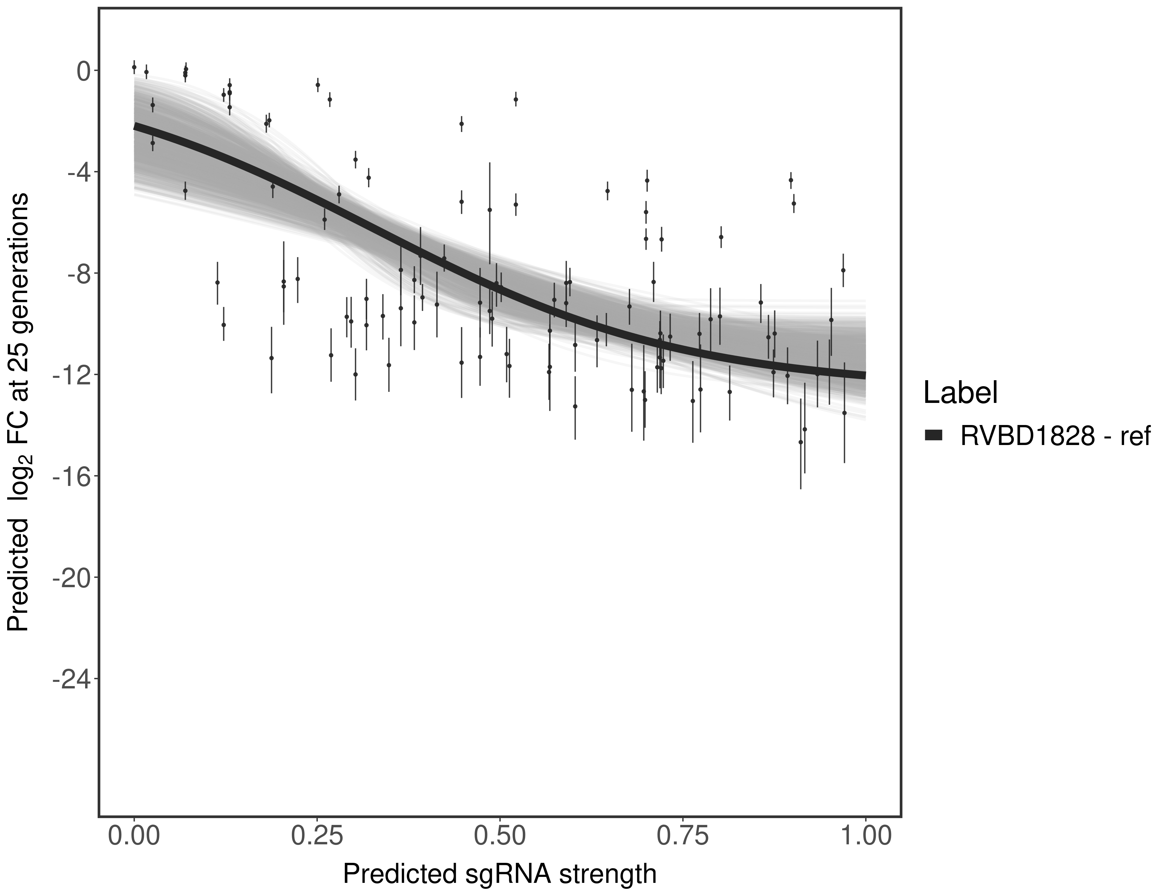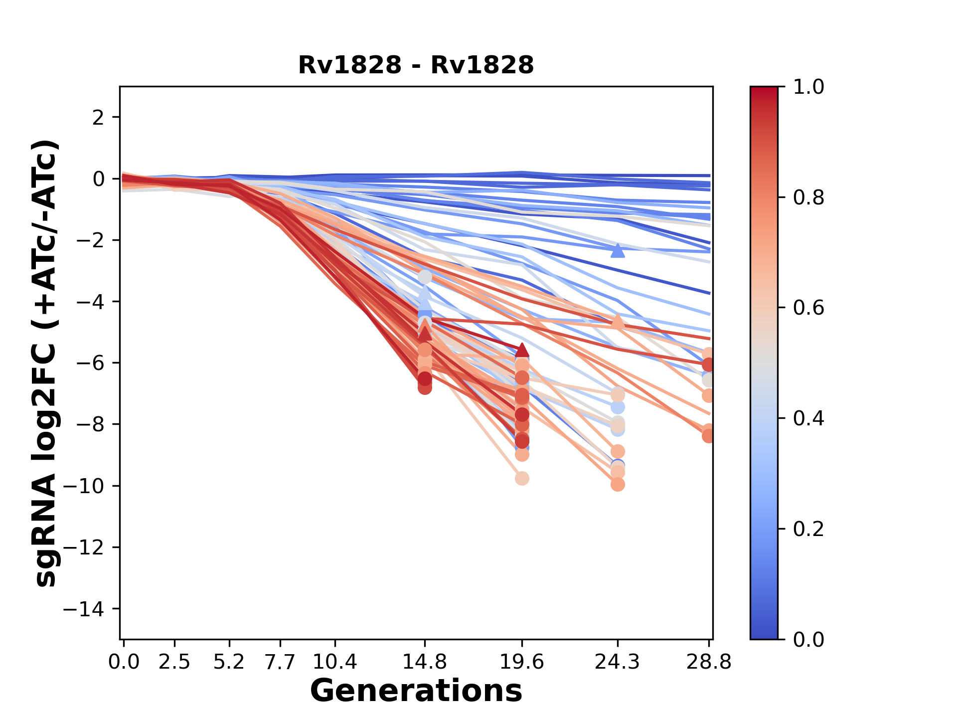 Experiment: We designed an M. tuberculosis CRISPRi library (RLC12) to target all annotated Mtb genes with single guide RNAs (sgRNAs) of varying predicted knockdown efficiencies.