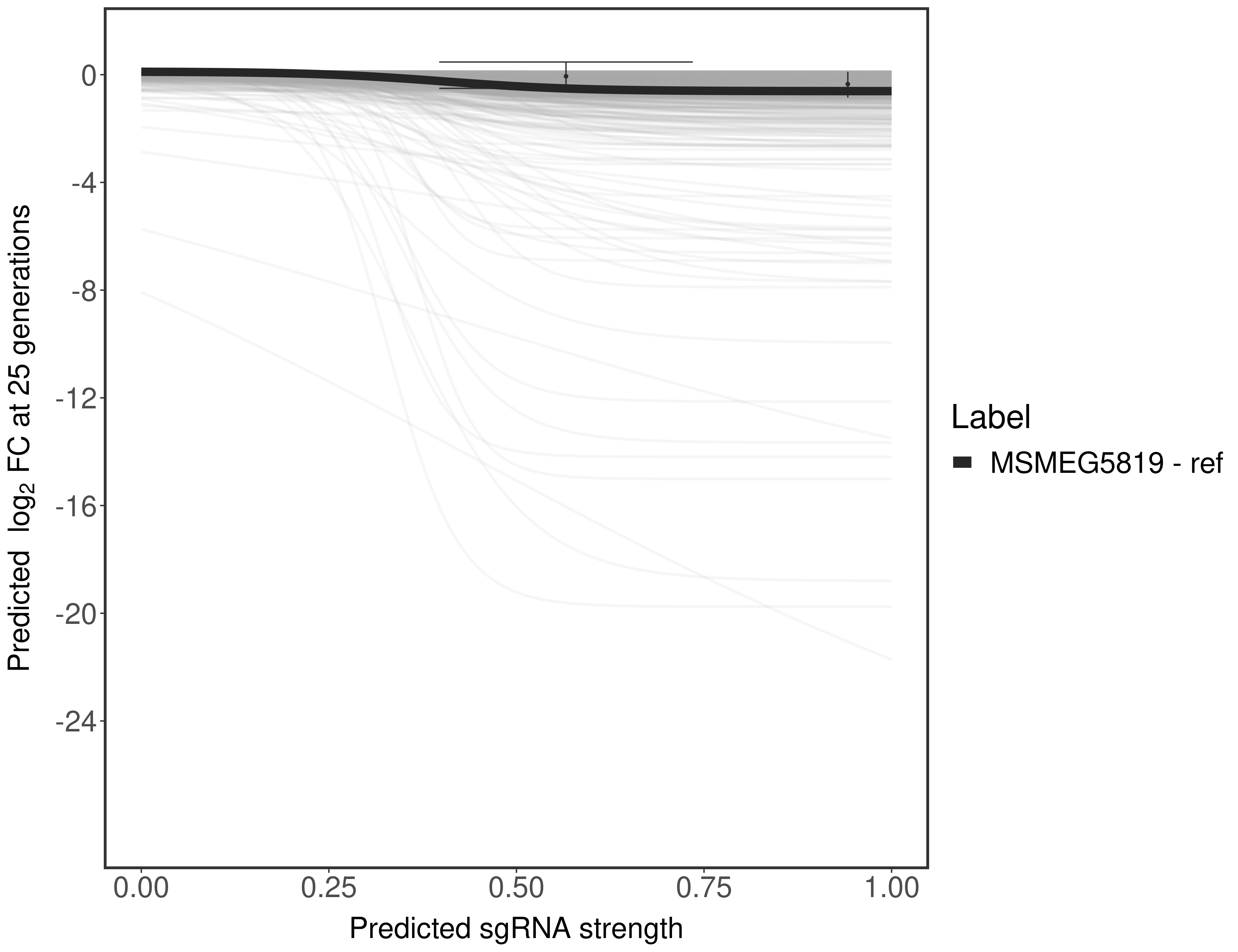 Experiment: We designed an M. tuberculosis CRISPRi library (RLC12) to target all annotated Mtb genes with single guide RNAs (sgRNAs) of varying predicted knockdown efficiencies.