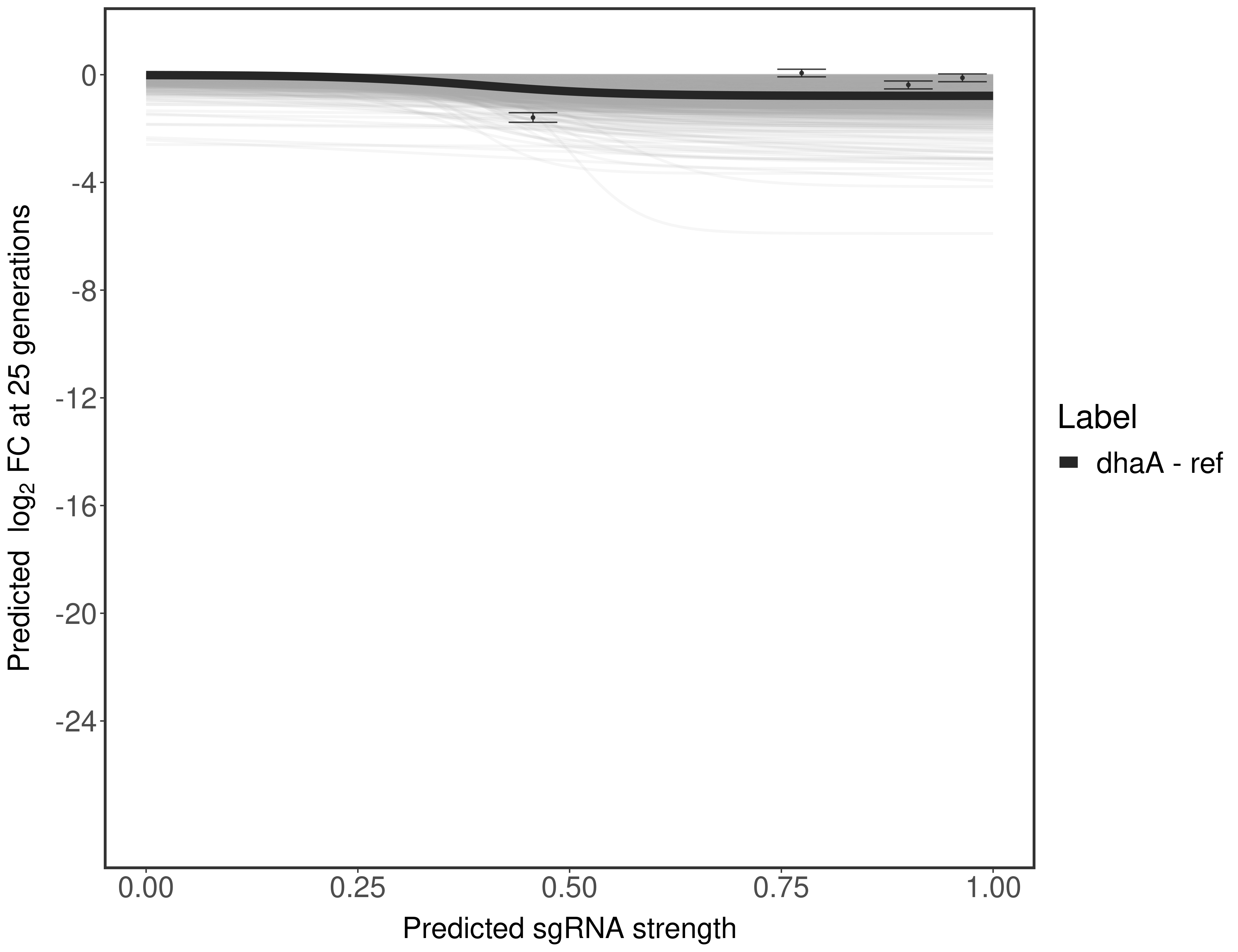Here, we show sgRNA log2 fold-change values (L2FC) (plus versus minus ATc) over consecutive generations for sgRNAs targeting the gene you selected.