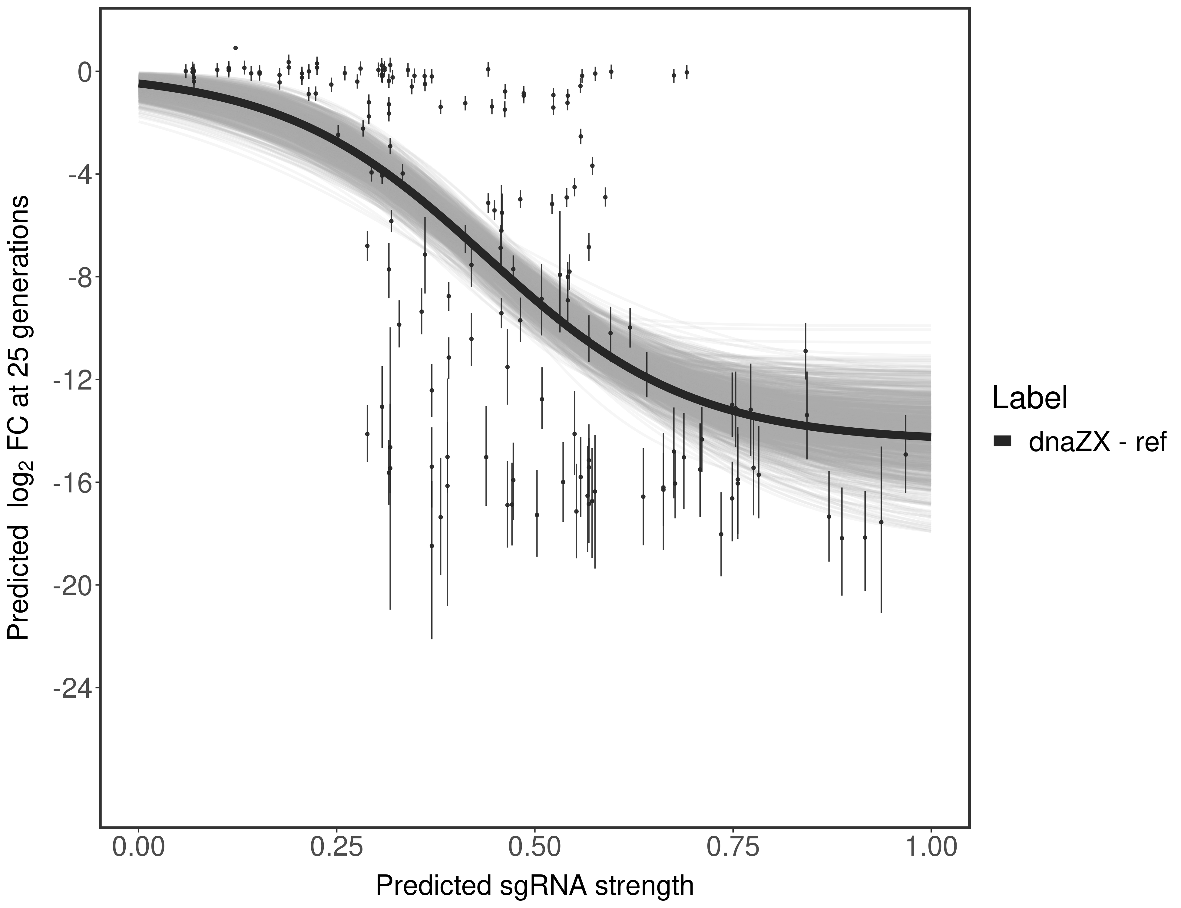 In order to quantify gene vulnerability, data were subsequently analyzed with a hierarchical model at the sgRNA level (two-line model) and gene level (Hill curve). The vulnerability quantification is shown below. [More information]