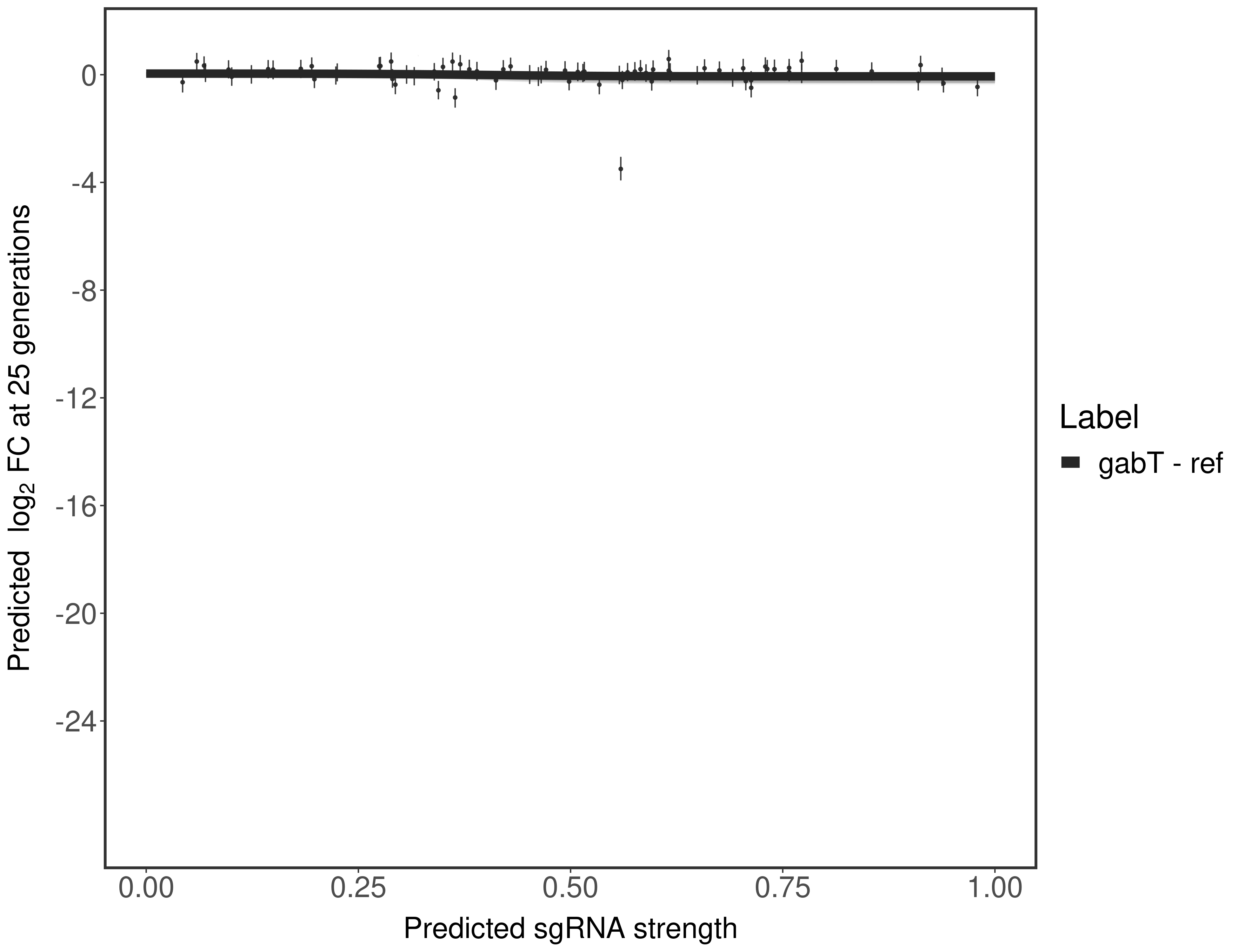Here, we show sgRNA log2 fold-change values (L2FC) (plus versus minus ATc) over consecutive generations for sgRNAs targeting the gene you selected.